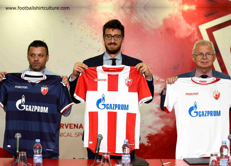 These are the new Red Star Belgrade 17/18 home, away and third football shirts by Macron.