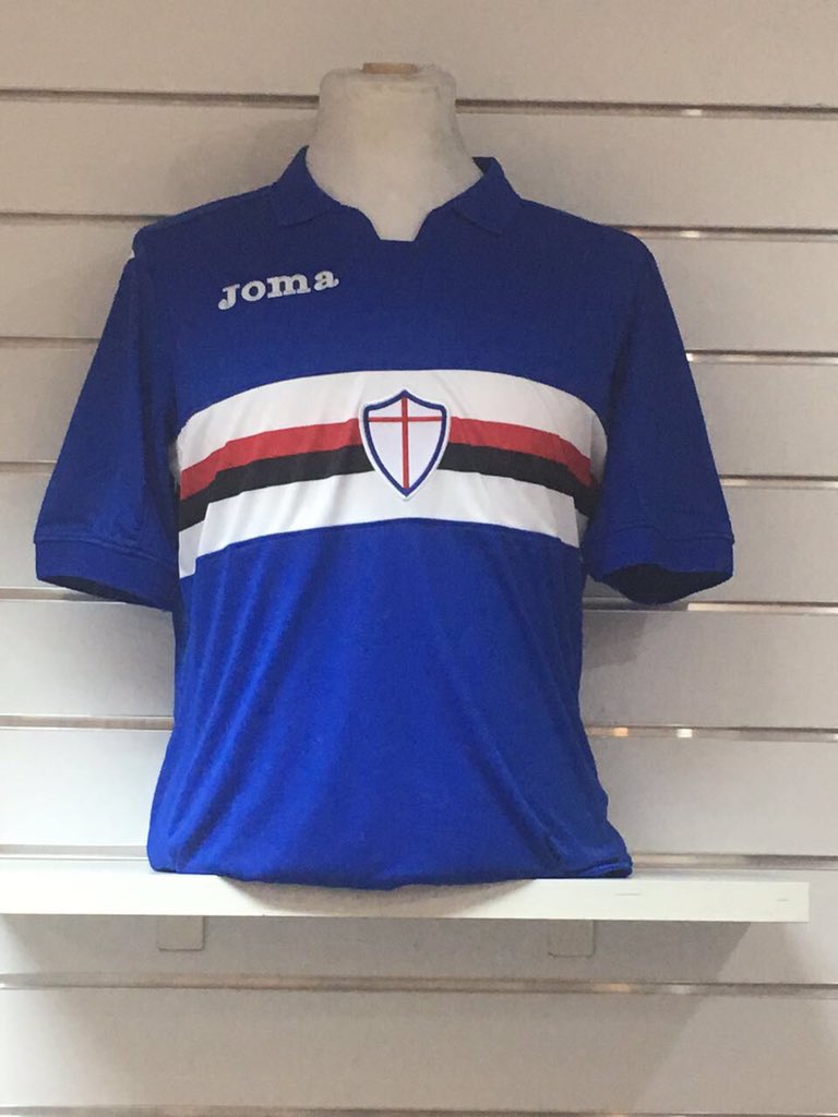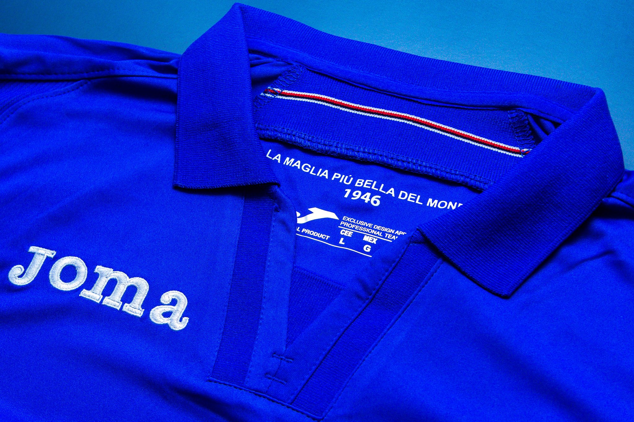 This is the new 17/18 Sampdoria home football shirt by Joma, which has the words “La maglia più bella del mondo” (“the world’s most beautiful jersey”) written on the inside, just below the neckline.