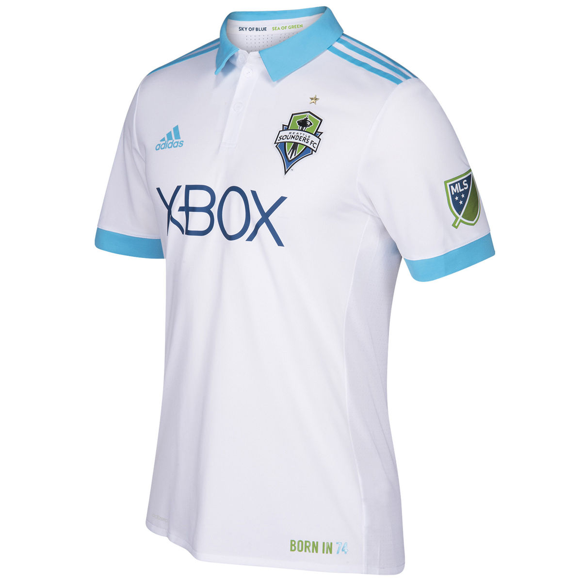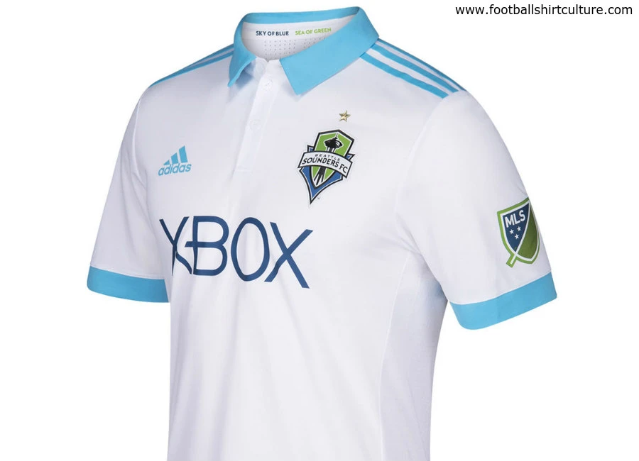 The Heritage kit celebrates the new heights achieved by Sounders FC in 2016 while hearkening back to the club’s origins and proud soccer history. The jersey is designed with a lifestyle look in mind, done in clean white with a polo collar and bright cyan details. A throwback crest from the NASL Seattle Sounders graces the back neck, and the jock tag reads “Born in 74,” referencing the year the Sounders first took the pitch in Seattle. The back of the jersey also features adidas’ engineered Adizero back panel to aid in player comfort and temperature regulation.