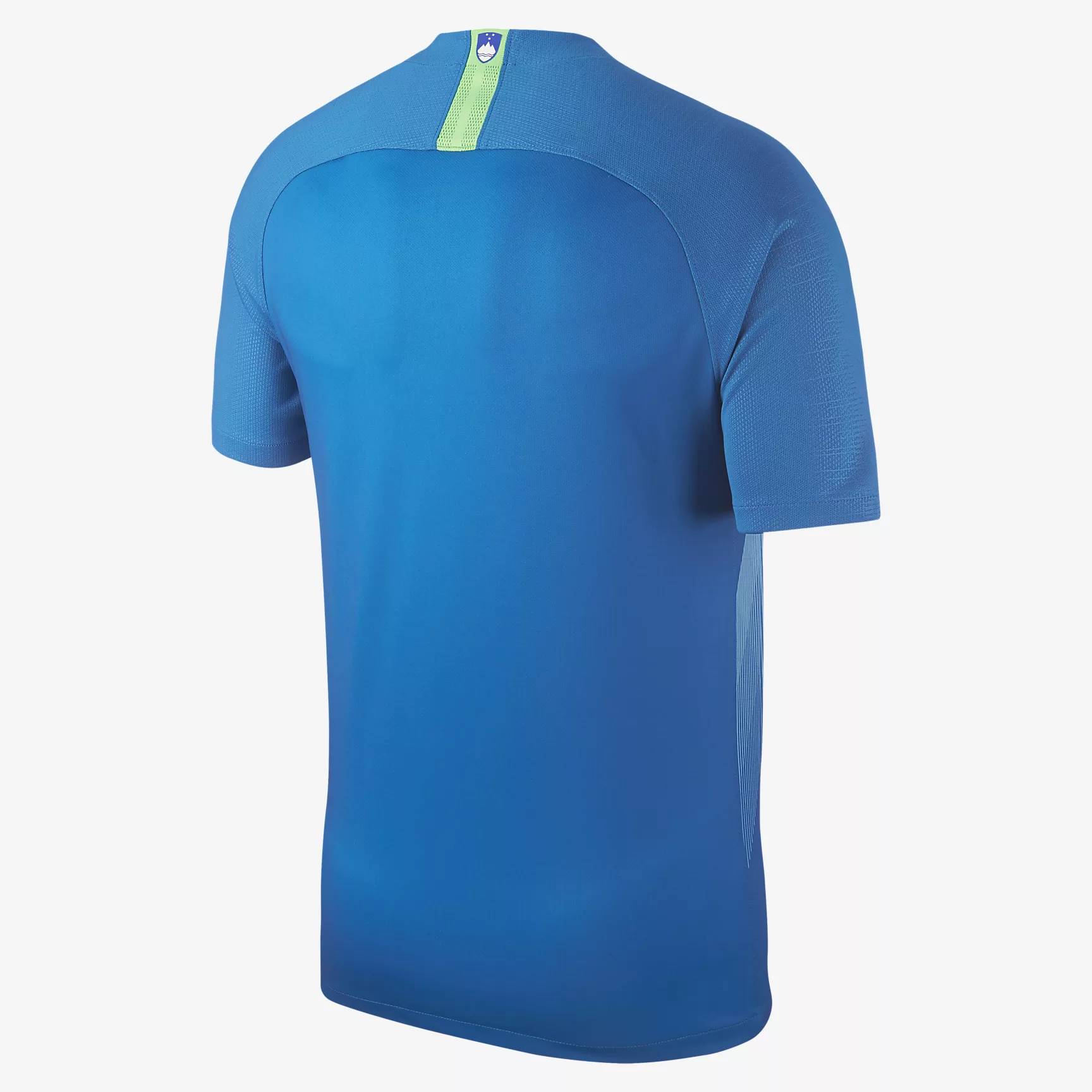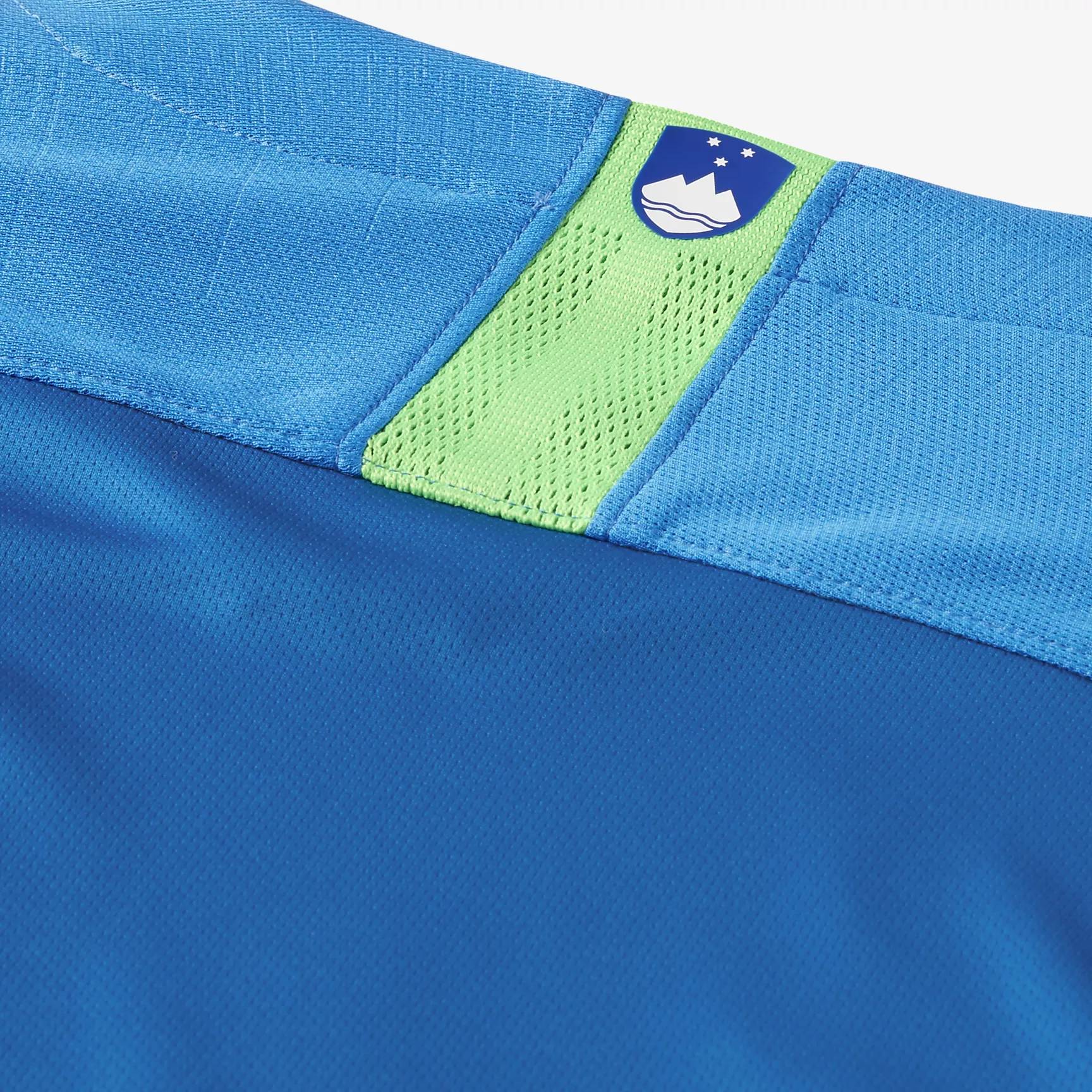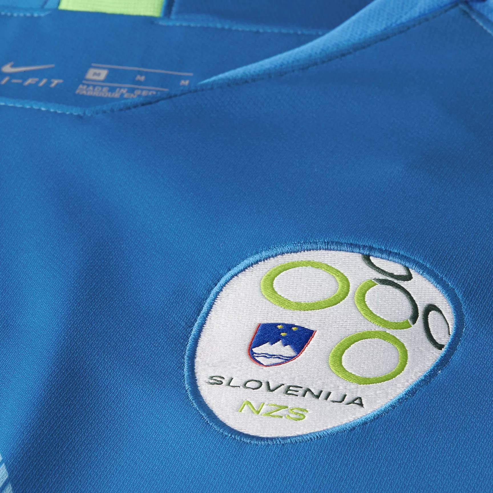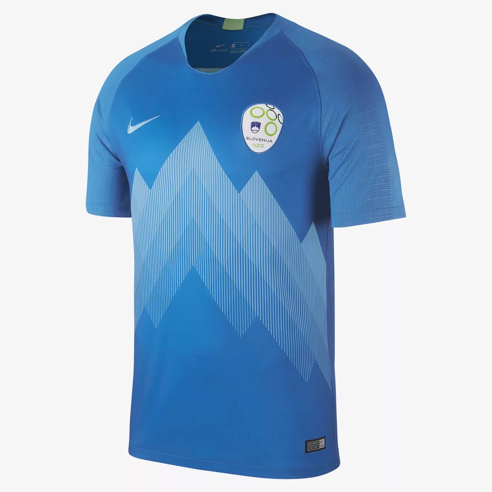 At 2,864 meters, Mount Triglav is the highest peak of the Julian Alps. It's also the symbol of the Slovene nation that forms the graphic underpinning of the Football Association of Slovenia’s new away kit, represented by a tonal blue on the dark blue shirt.