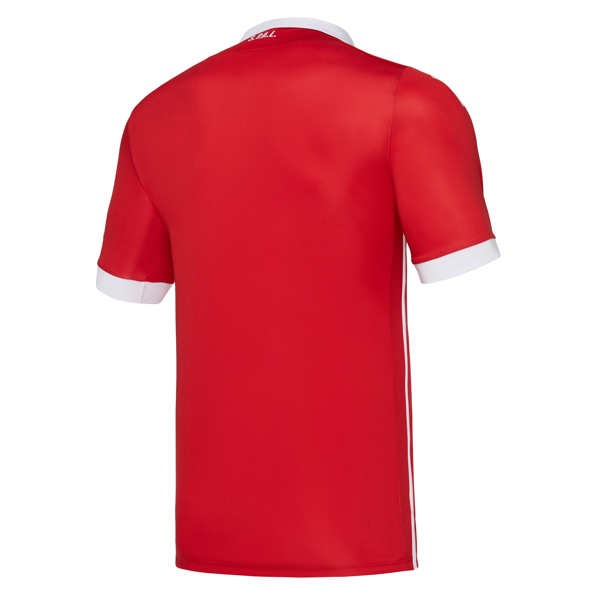 The new S.P.A.L. 17/18 away football shirt by Macron comes in red with a vertical band on the left side in the club’s traditional colours, white and pale blue.