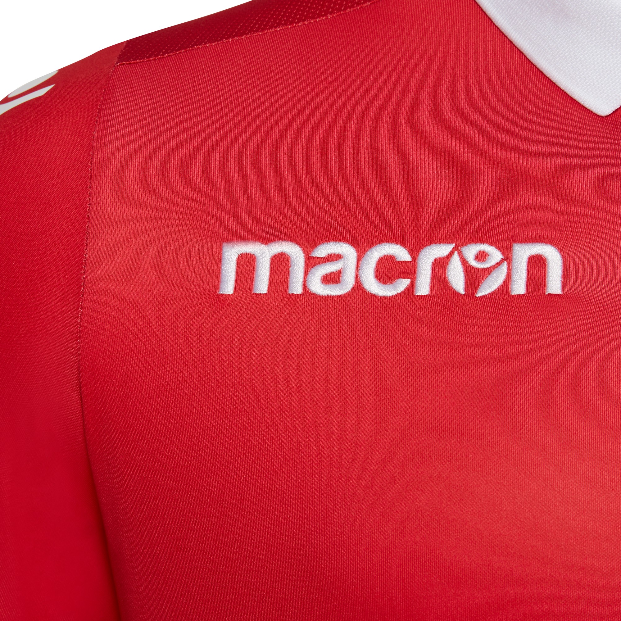 The Polo style collar and sleeve cuffs are knitted. Mesh inserts on the sides ensure a comfortable, cool sensation and breathability. The lettering 'S.P.A.L.' is embroidered on the back of the shirt, just below the neck, in white, underlining the attention to detail. There is a white Macron Man logo on the shoulders.