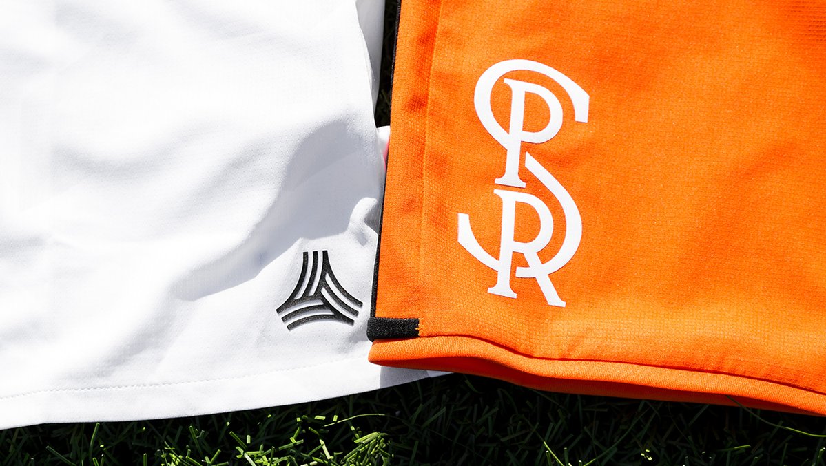 The new uniform, accompanied by orange shorts and white socks, includes an orange Rangers crest and Ivy Investments wordmark. The prevalence of white is accented by slate gray geometric shapes on the front side of the kit as well as the black adidas logo on the chest, adidas three stripes along the shoulders, the USL badge on the left sleeve and the black adidas Tango logo on the bottom left side.