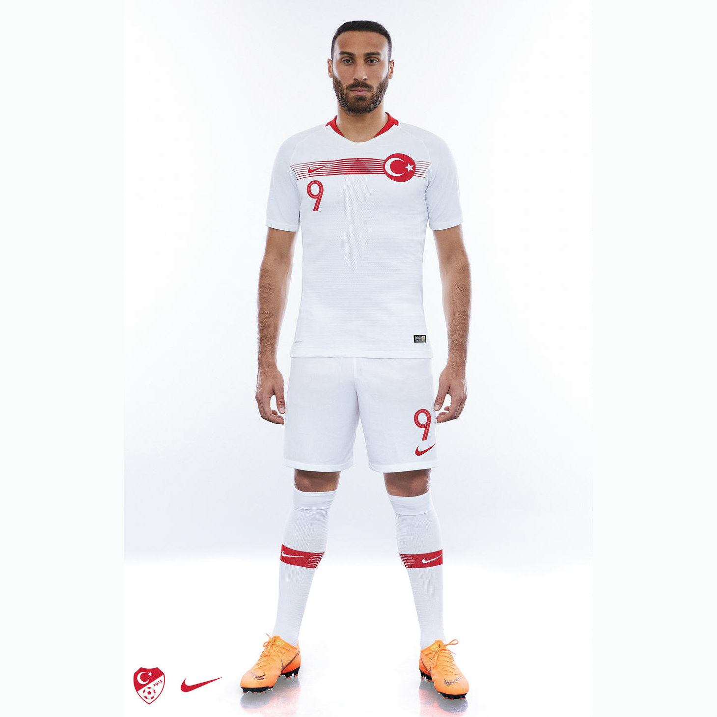 This is the new Turkey 2018 Away football shirt by Nike. The away shirt is classic white and embellished with a horizontal red stripe running across the chest.