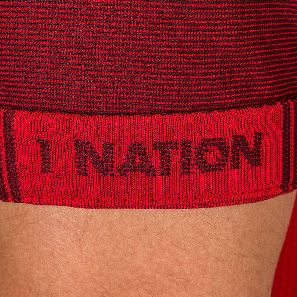 Simple and iconic, the new shorts are red with black elastic side tape and the socks are red with a touch of orange on the calf. The shorts are slim and tailored to the body, with a cut specifically designed to aid movement and comfort.