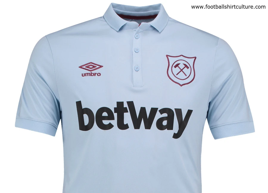 The sky-blue shirt is also embroidered with the first known crest ever to ever appear on a West Ham United jersey, from the famous first Wembley FA Cup final of 1923.