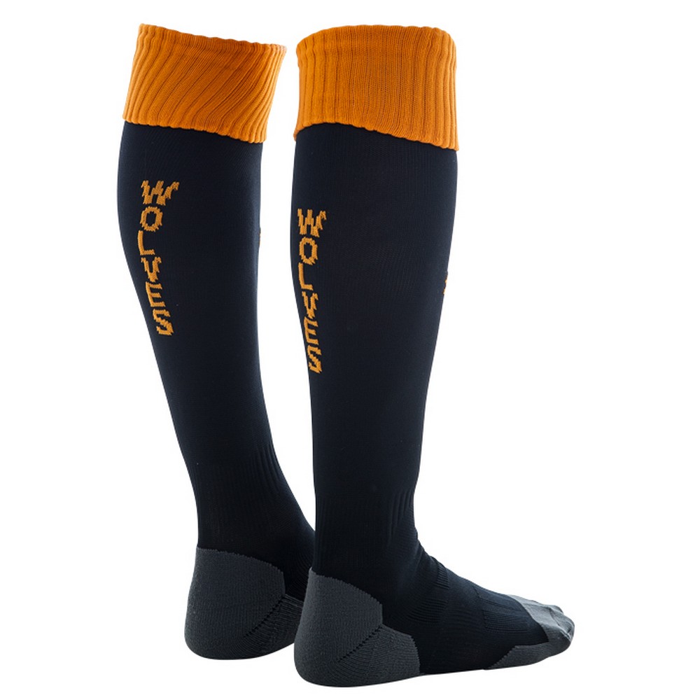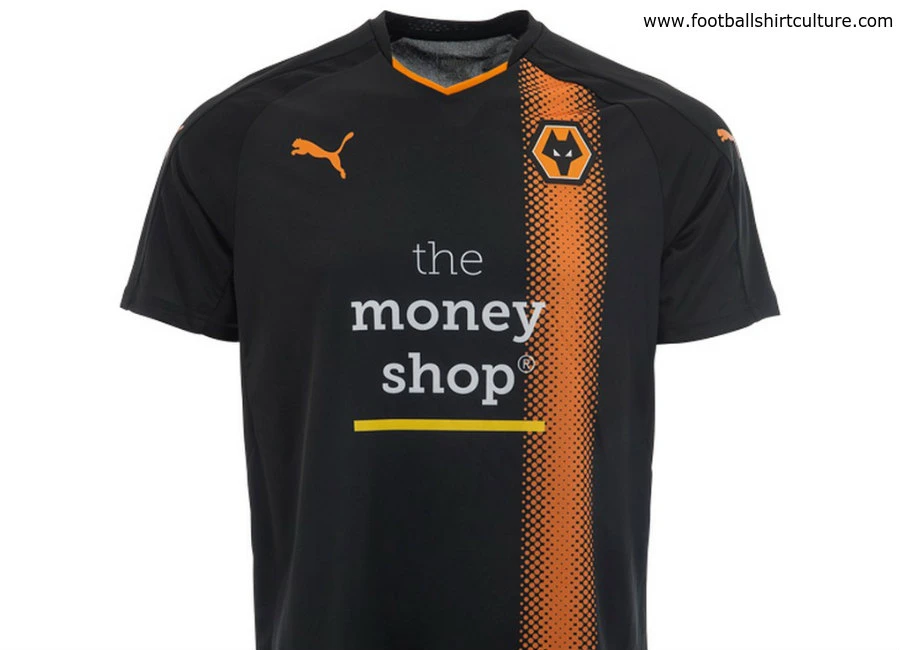 The Money Shop sponsor logo and gold ascension stripe have been sublimated into the front of the shirt. The shirt also features a heat applied Puma cat logo and Wolves woven crest badge.