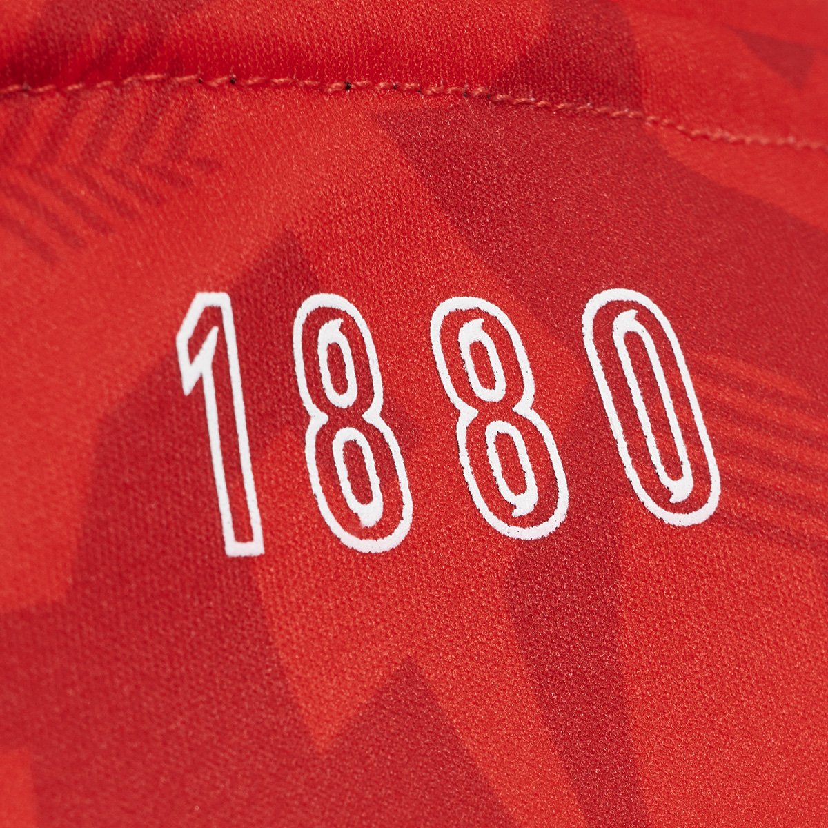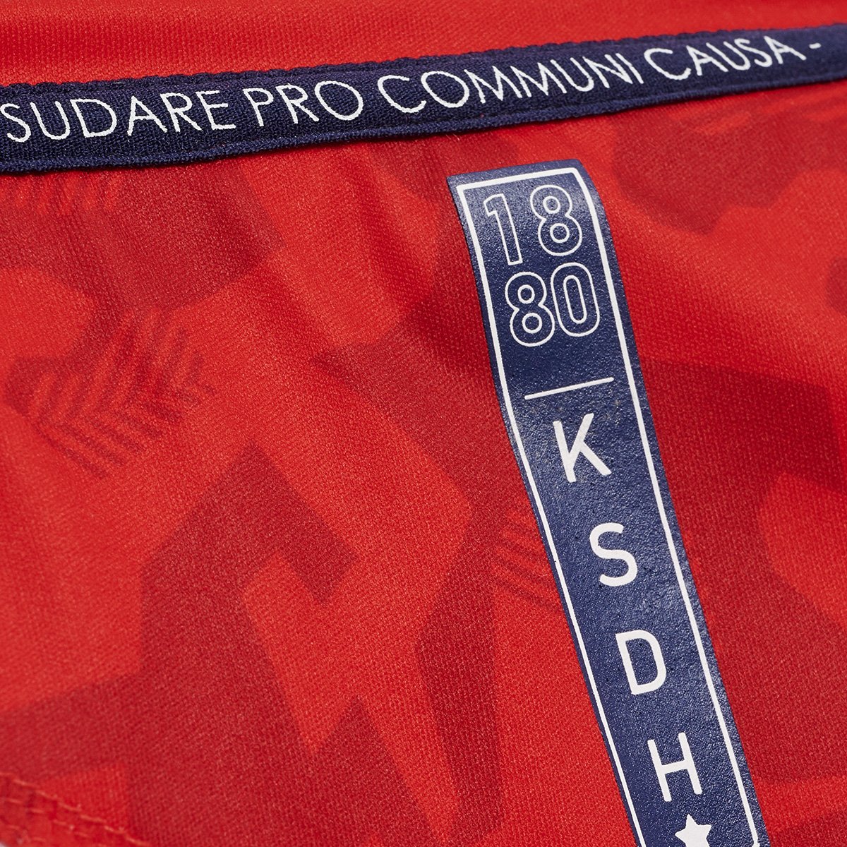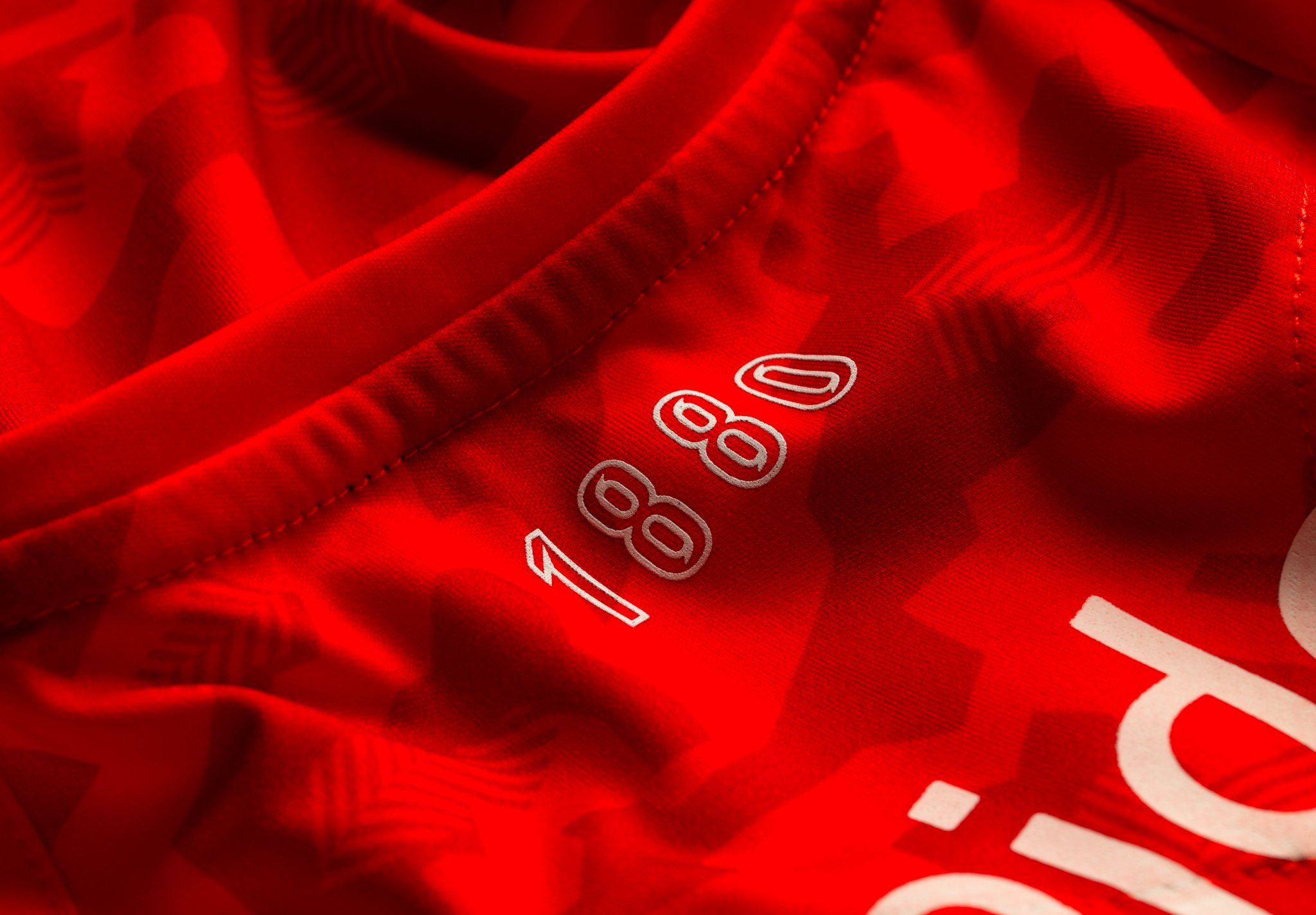 This 2019 camo shirt is red, a colour that naturally refers to the red colour in the AGF logo.