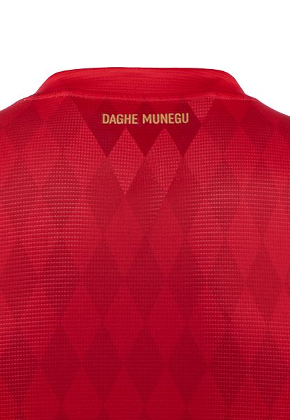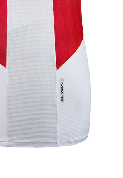 The white half is the lower part of the jersey in order to have a dominant red colour on top where an all-over diamonds pattern is sublimated.