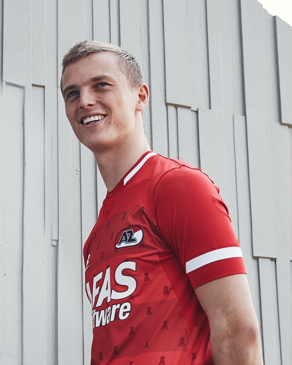 The new home shirt is inspired by the city of Alkmaar. In addition to the traditional red and white AZ colours, the city coat of arms is also visible. The Alkmaar flag can be found in the collar.
