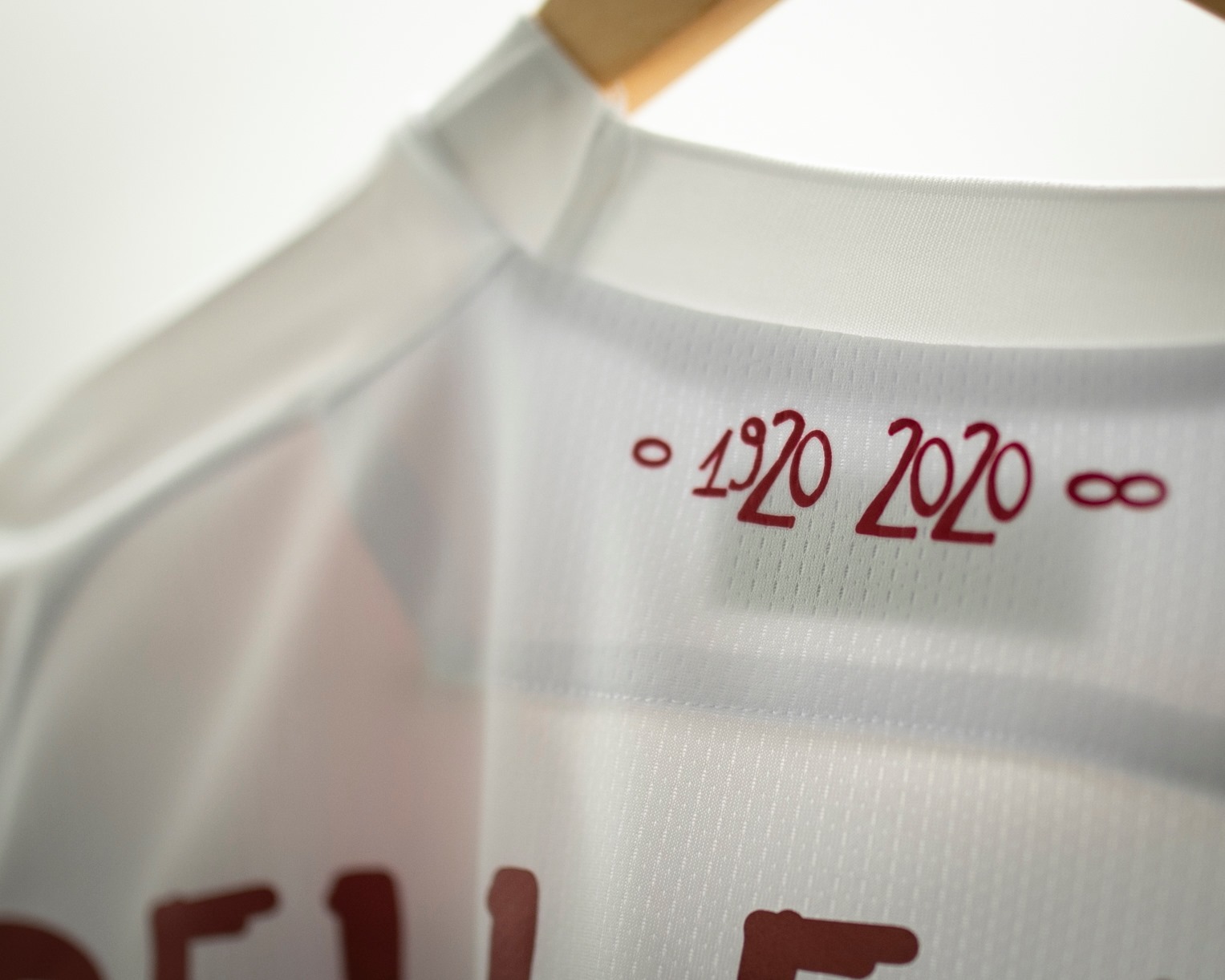 Macron, the technical sponsor of Cagliari, has produced the centenary shirt in collaboration with the noted designer Antonio Marras, who has also designed the Anniversary Crest.