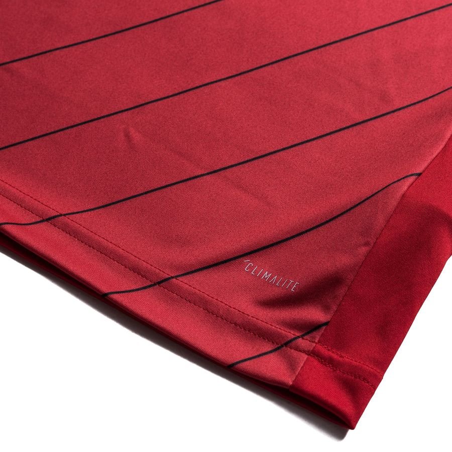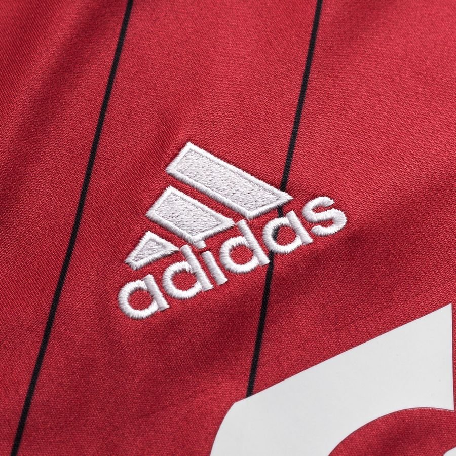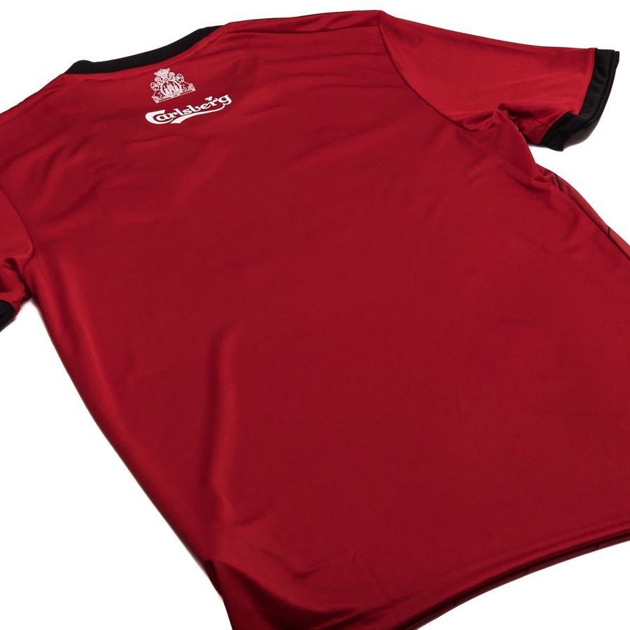 The third shirt is red with black and white details and features the coat of arms on the back of the neck.