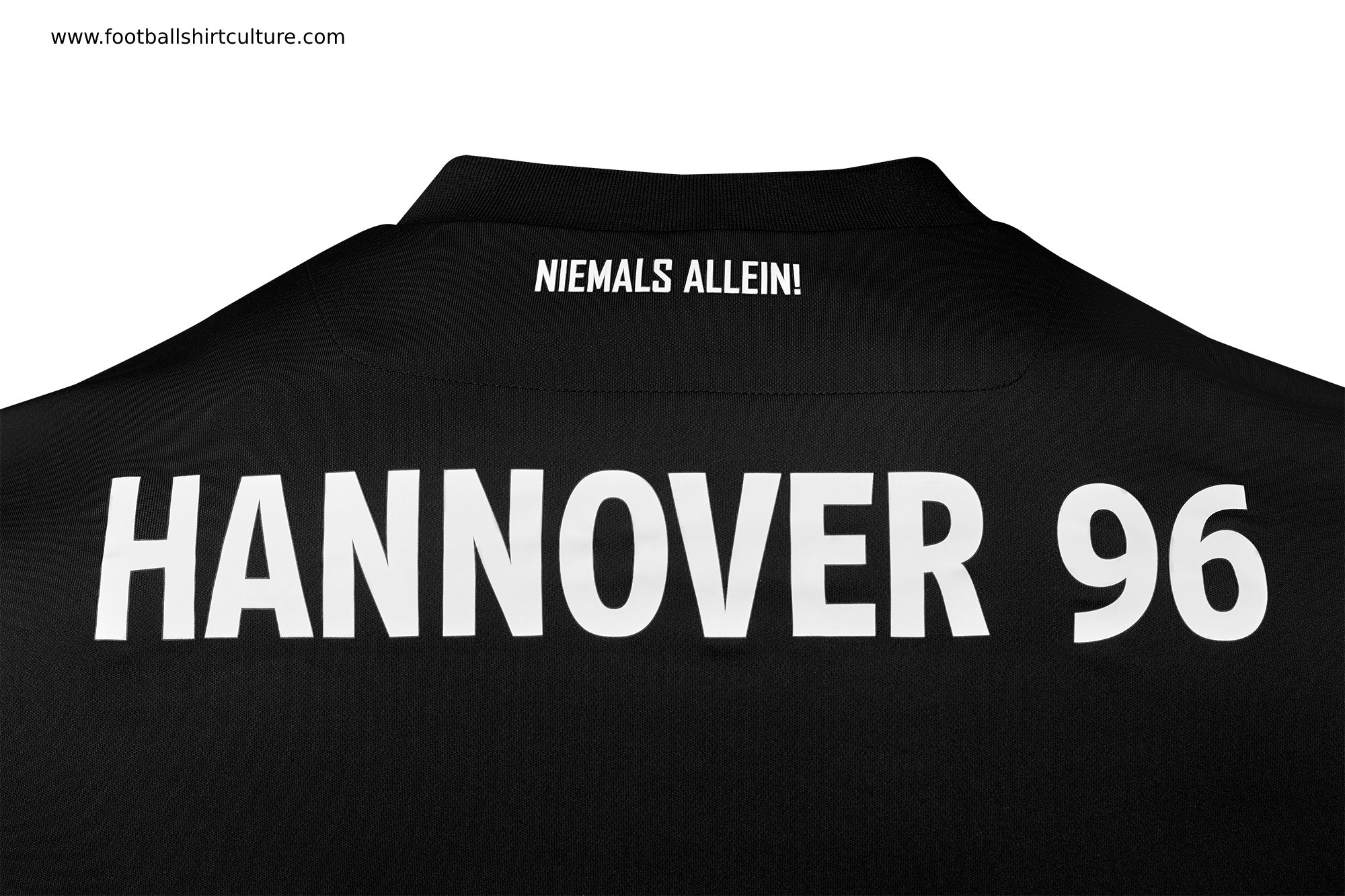 The backneck is customised with the club logo and their motto ""NIEMALS ALLEIN!"". On the back, the words ""Hannover 1896"", year of the foundation of the team - are embossed. Also on the right side of the chest the Macron Hero, logo of the Italian brand, is featured, whereas on the left the Hannover 96 crest stands out.