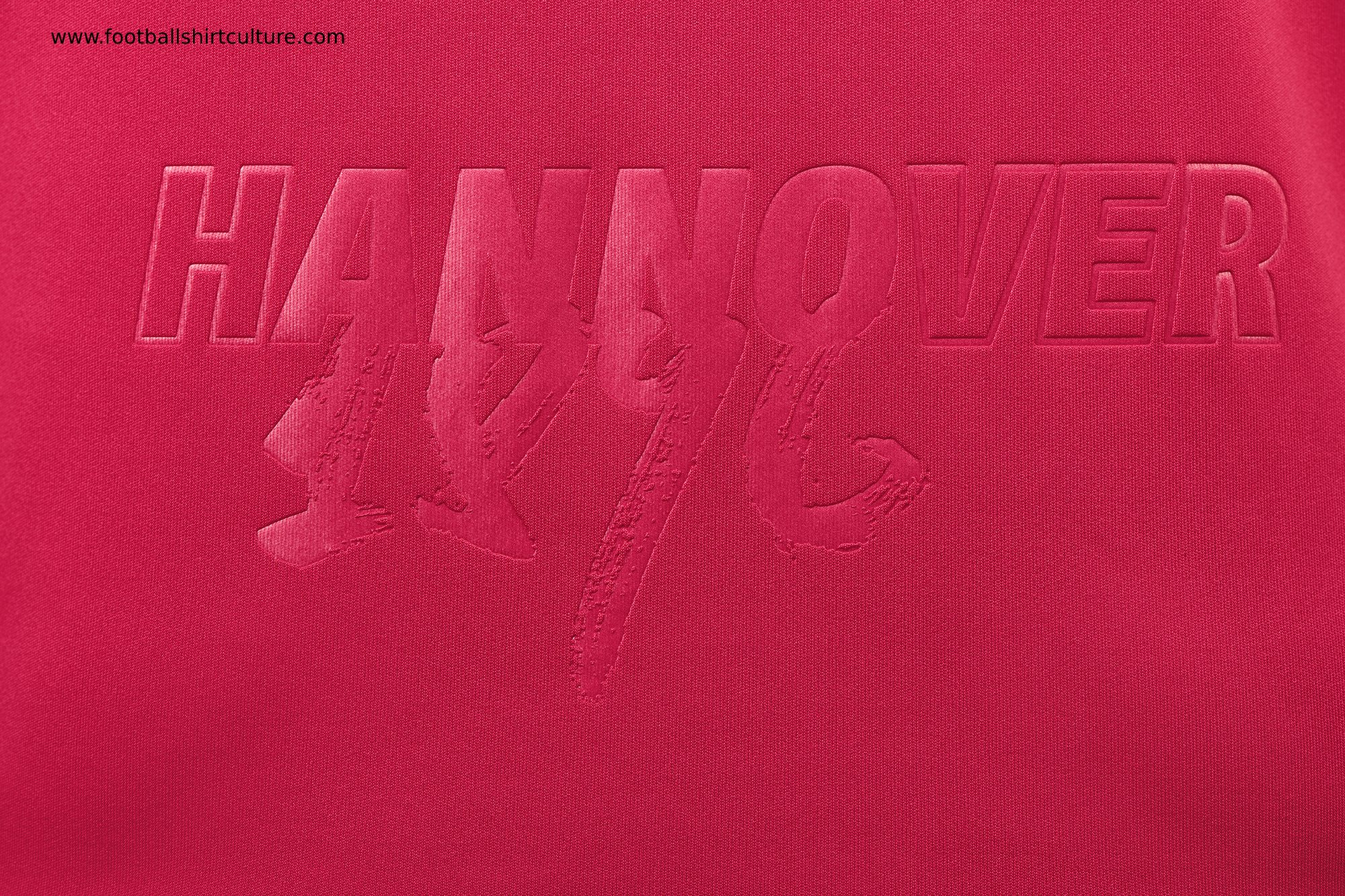 The backneck is customised with the club logo and their motto ""NIEMALS ALLEIN!"". On the back, the words ""Hannover 1896"", year of the foundation of the team - are embossed. Also on the right side of the chest the Macron Hero, logo of the Italian brand, is featured, whereas on the left the Hannover 96 crest stands out.