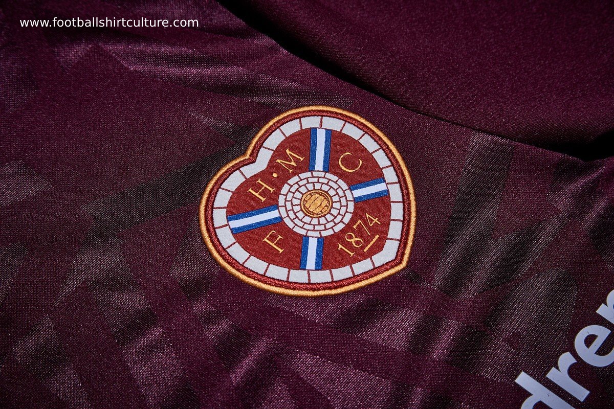 The 2019/20 home jersey is a modern twist on a traditional Hearts home kit with matt shine jacquard fabric in a shattered diamond design to the front body and sleeve panels.