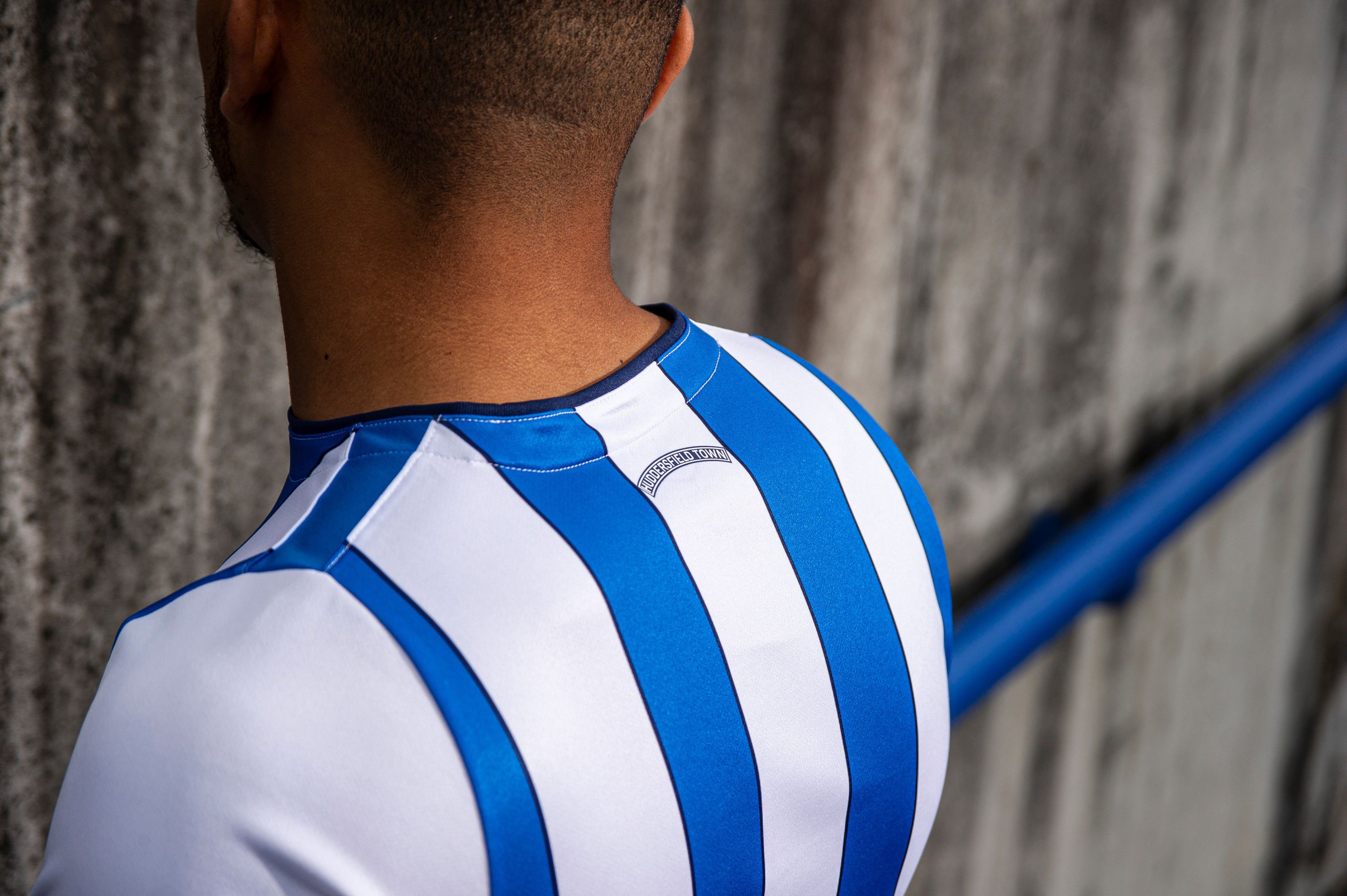 48 hours after the first release of a home shirt that has been much-discussed amongst Town fans and the wider football community – and which was also worn in the pre-season win at Rochdale on Wednesday night – a blue and white striped shirt featuring no sponsor logo has now been revealed.