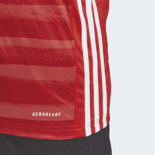 The new home jersey for HFF is boldly coloured red and white, with green detail around the collar, in celebration of the country’s national flag.