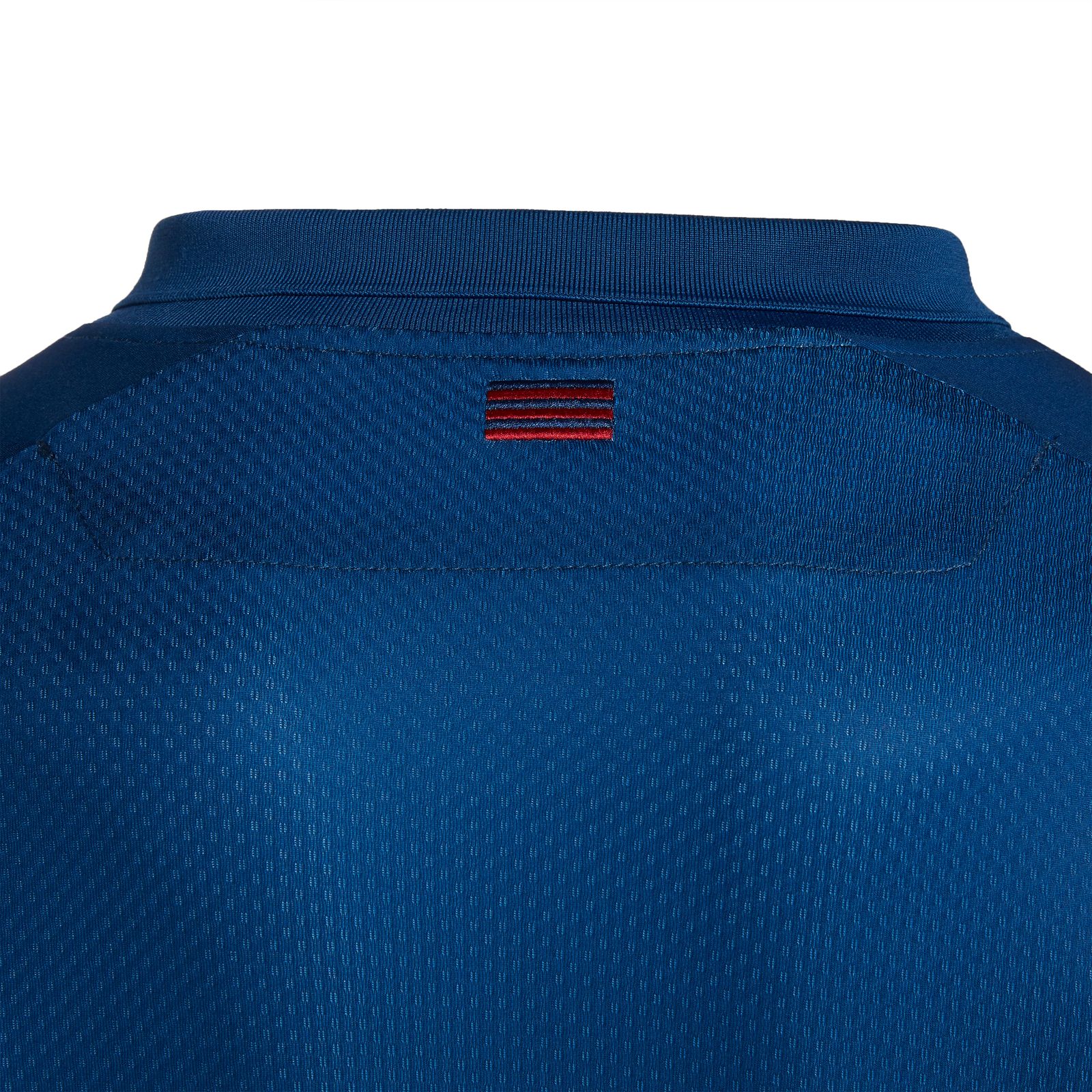The inside of the bottom of the shirt is customised with the repeated phrase 'Macho Levante' combined with the club logo. On the backneck, the embroidered flag, featuring the club’s colours, represents a precious and stylish detail. The Macron logo and the Levante club badge, both in silicone, are located on the front.