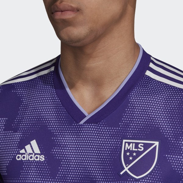 Celebrating MLS’s status as a league of two nations in a style that is authentic to the host city, the 2019 MLS All-Star jersey features an all-over engineered stars and maple graphic on a regal purple base with light purple accents that pay tribute to host club Orlando City SC.