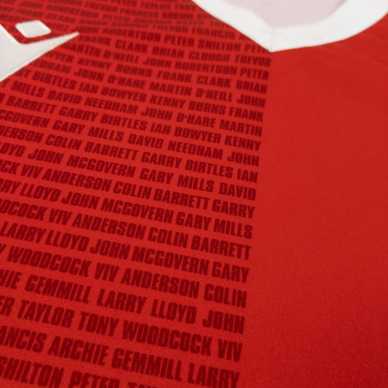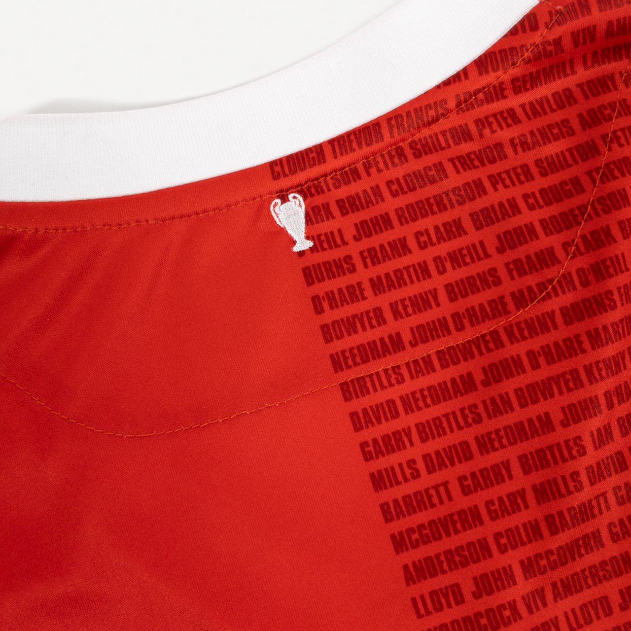 Nottingham Forest were led by the legendary Brian Clough, the manager who stayed in charge of The Reds for 18 years and hired amazing players like Peter Shilton (England’s national-team goalkeeper), Kenny Burns, John Robertson and Trevor Francis. This special shirt celebrates these champions, as well as all the other members of that team.