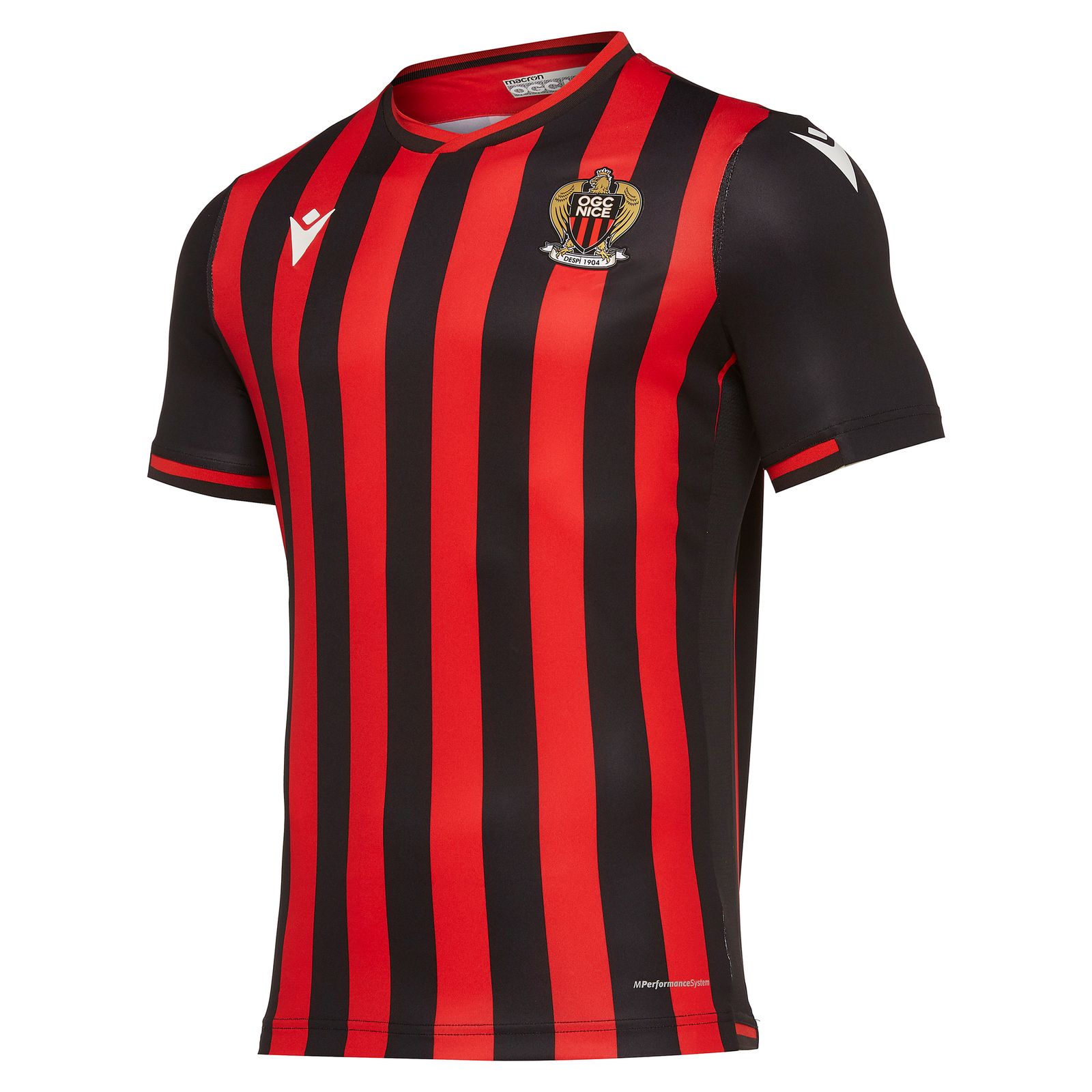 The OGC nice home shirt remains faithful to tradition and comes in red and black stripes. The unique collar has rib-knit inserts and is crossed in the middle.