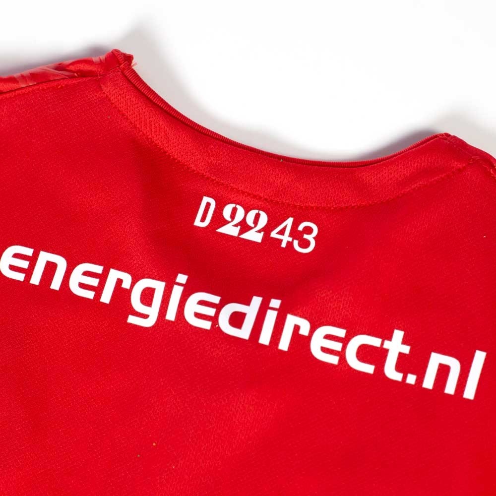 Beneath the collar on the back, a style element referring to the chair number of Frits Philips has been printed. The back is completed with Energiedirect.nl sponsorship.