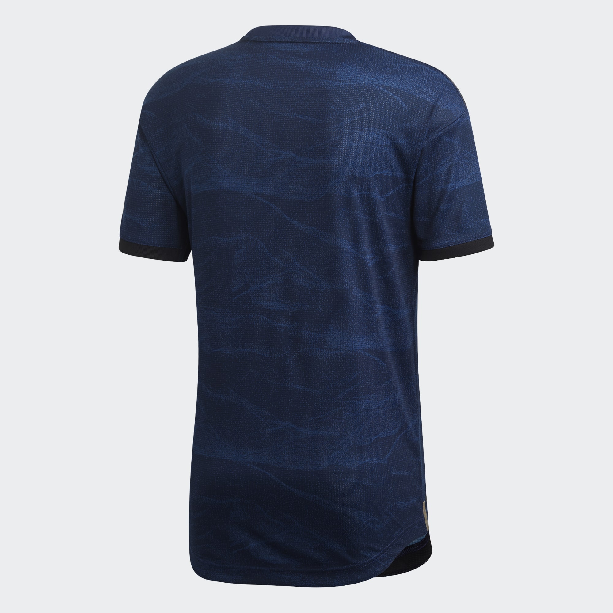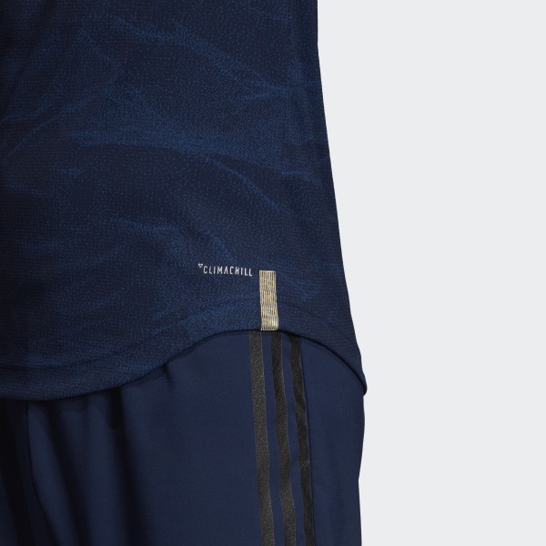The strip features an elegant dark blue design and, just like the home kit, comes with gold trim and logos in a reference to the club's numerous successes.