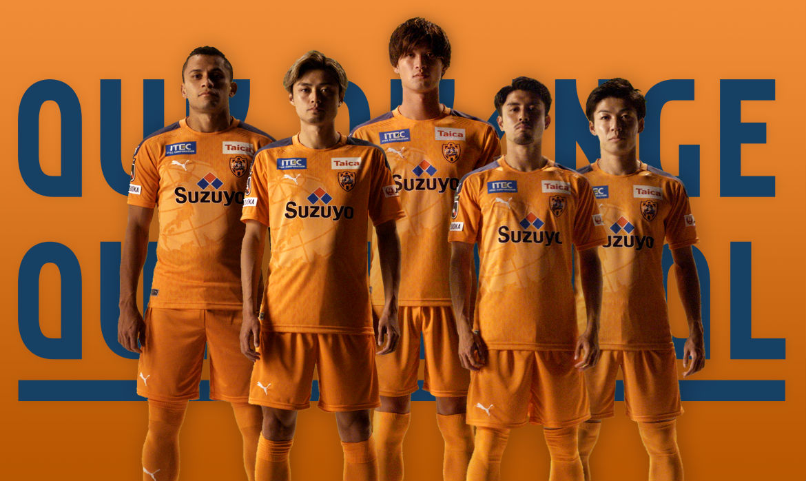 Taking inspiration from falconry, the design features geometrically patterned arrow feathers in the club colour "S-pulse Orange".