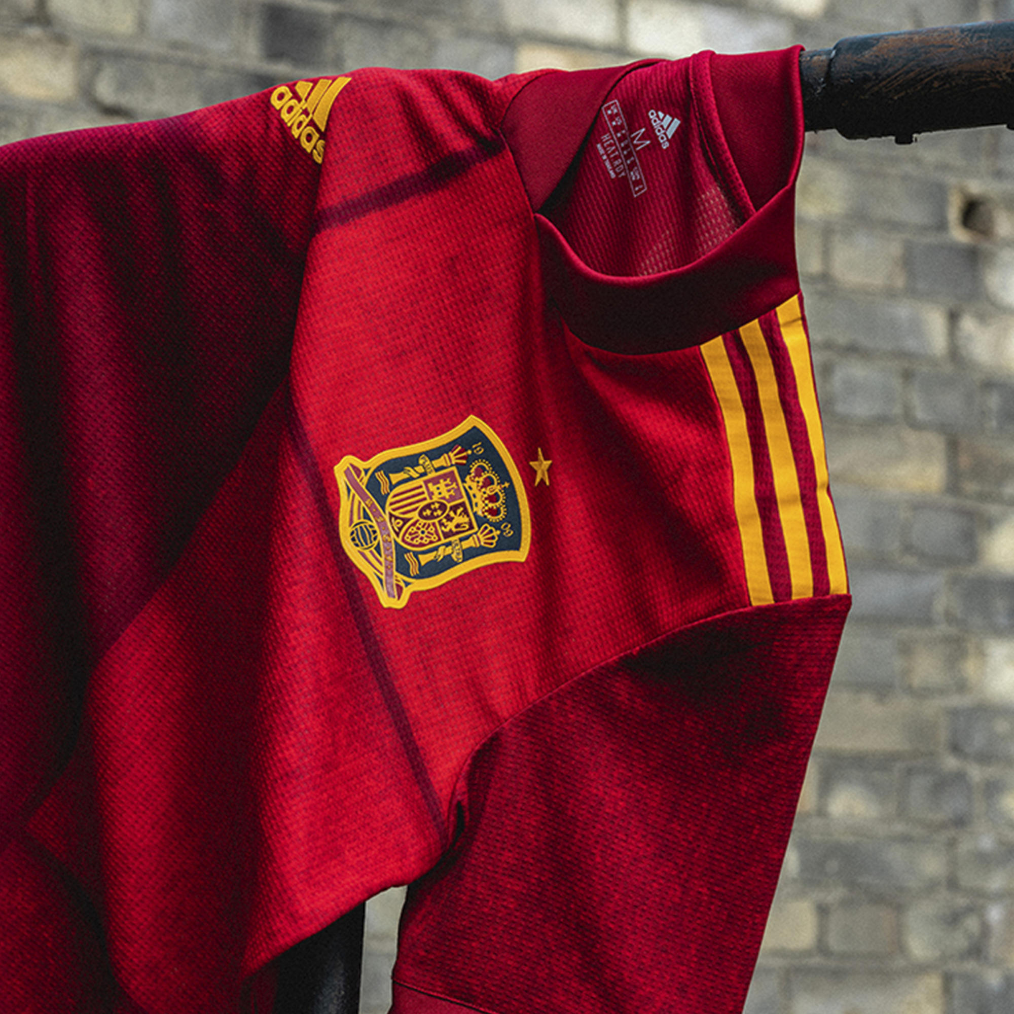 This bold print, which aims to provide a modern take on the beloved flag, is accentuated by fine detailing on the neck reading ‘1920’, honouring the 100th anniversary of Spain’s first Federation shirt and their first iconic crest of a lion.