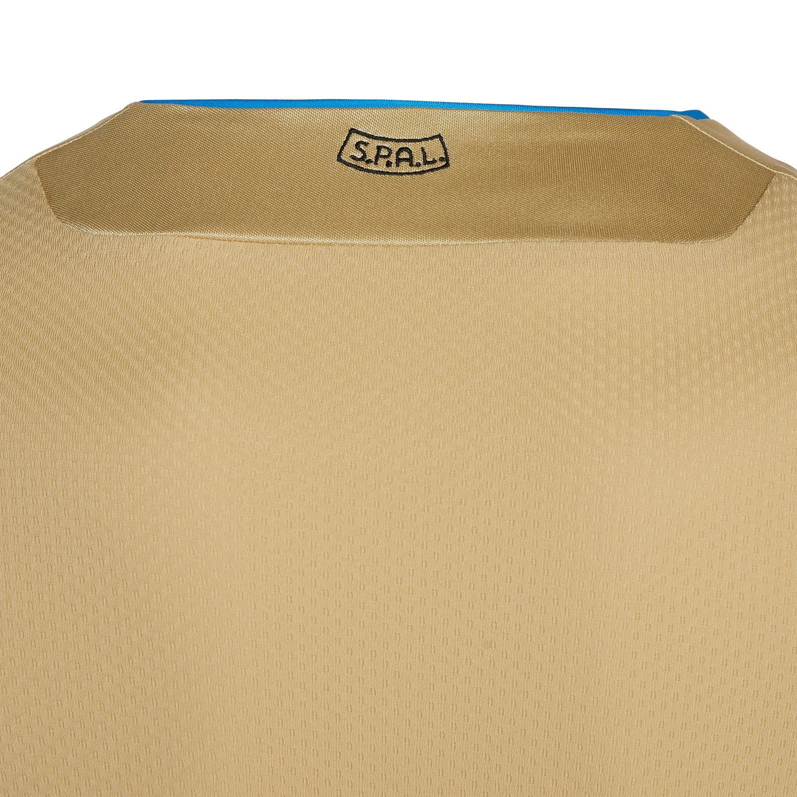 The Spal away shirt is predominantly gold with white, azure blue and black details. The shirt is made mainly of soft softlock, while mesh inserts have been added to ensure maximum freshness.
