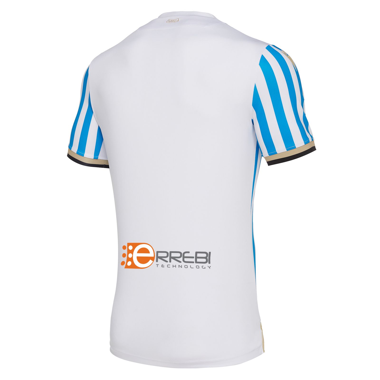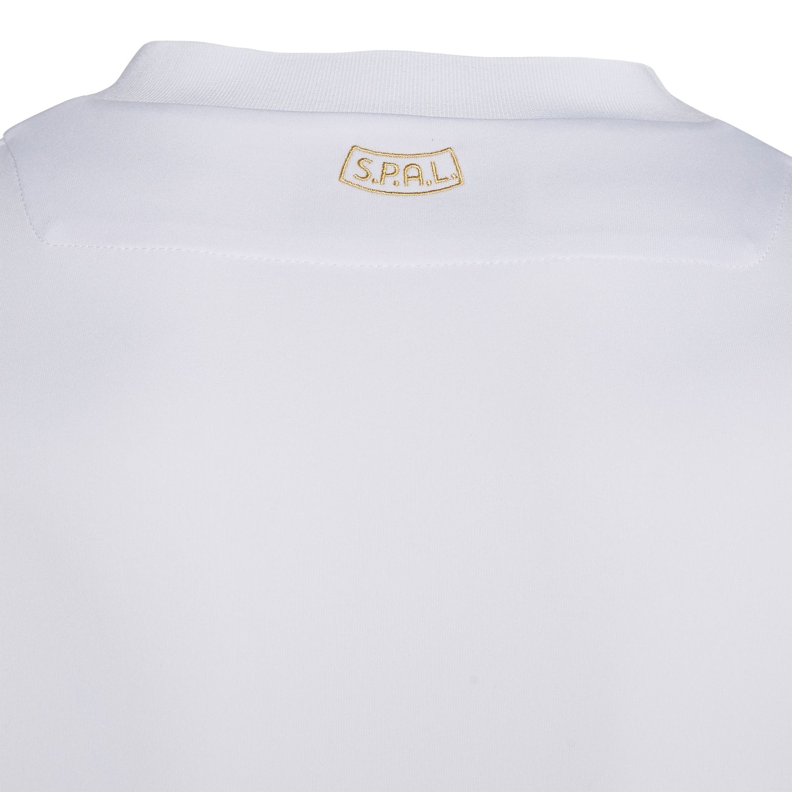 The Spal home shirt comes in the traditional azure blue and white colours, but has elegant gold details at the bottom of the sleeves and on the side slits.