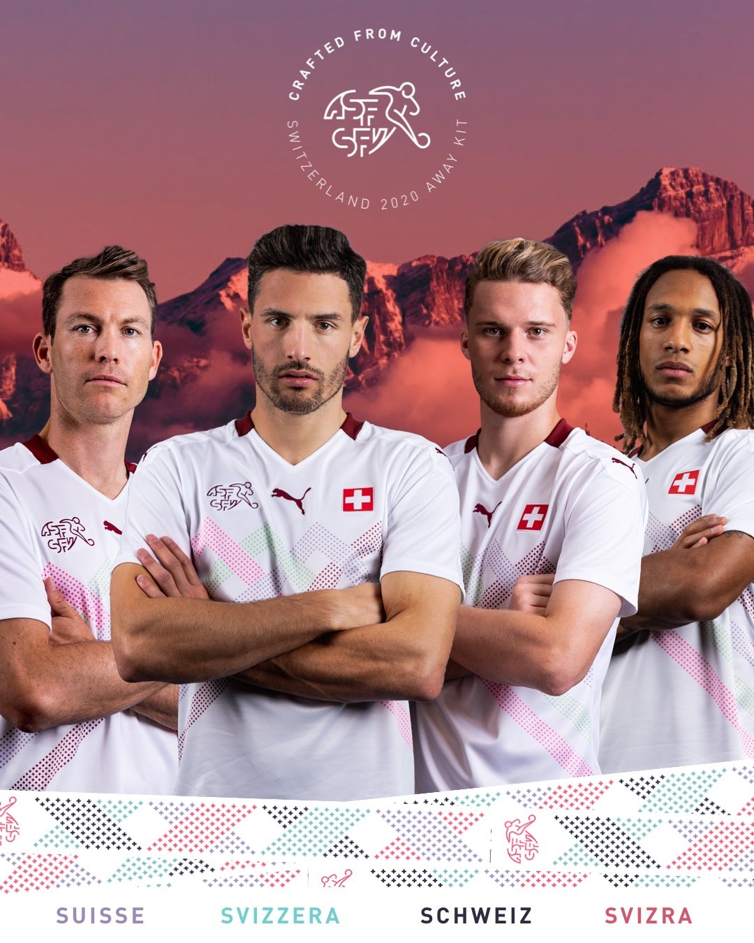 The design of the new away shirt was created under the motto 'Crafted by Culture'. For the first time, the traditional Swiss crosses are put together on a white background to form a new design.