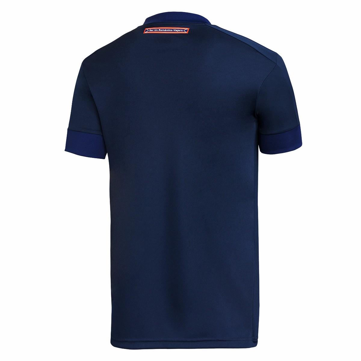 The new shirt is dark blue with a second shade of blue for the neck, cuffs and three stripes. It will also feature "Aeroready" technology, which provides better ventilation and freshness for players, and will be used by the teams in Europe and South America.