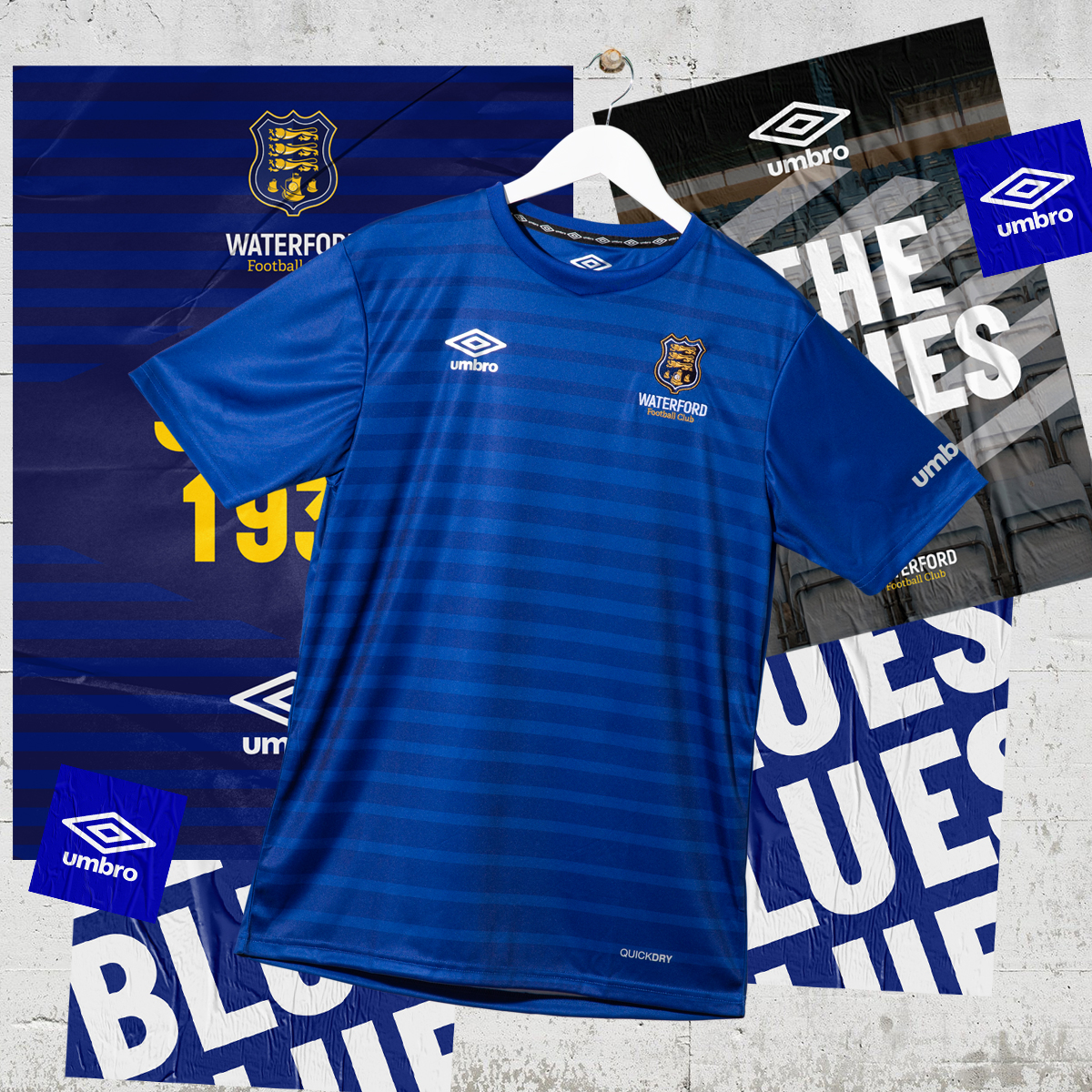 The new shirt features a rib crew neckline, transfer stacked silver diamond and an embroidered Waterford FC crest on left chest.