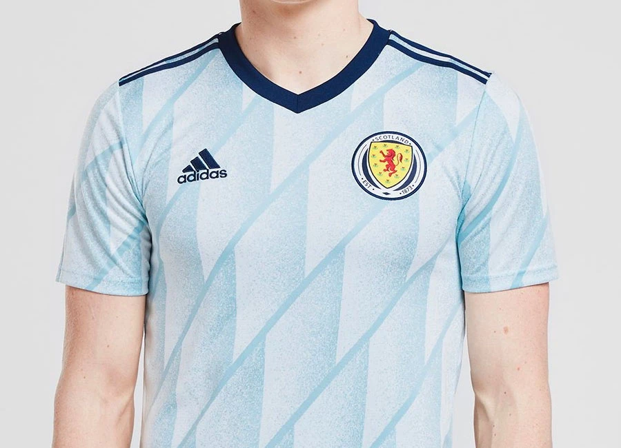 The new Scotland away kit has been officially unveiled. In a sky blue and white colourway, with navy accenting, this short sleeved shirt has a v-neck for a classic look. With a sky blue graphic...