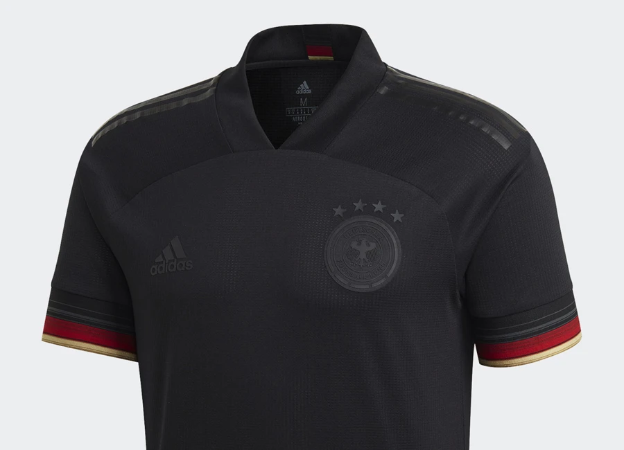 This is the newly launched Germany “blackout” Away shirt by adidas. A delayed release of a Condivo 20-based shirt - for the postponed Euro 2020 tournament due to be played later in 2021 - the design...