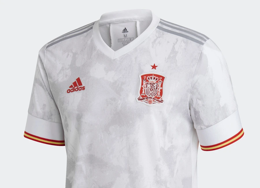 This is the new 2021 Spain Away shirt, to be worn in the delayed Euro 2020 tournament later this year. The white adidas design features a watermark in grey, marketed as an abstract representation of “the...