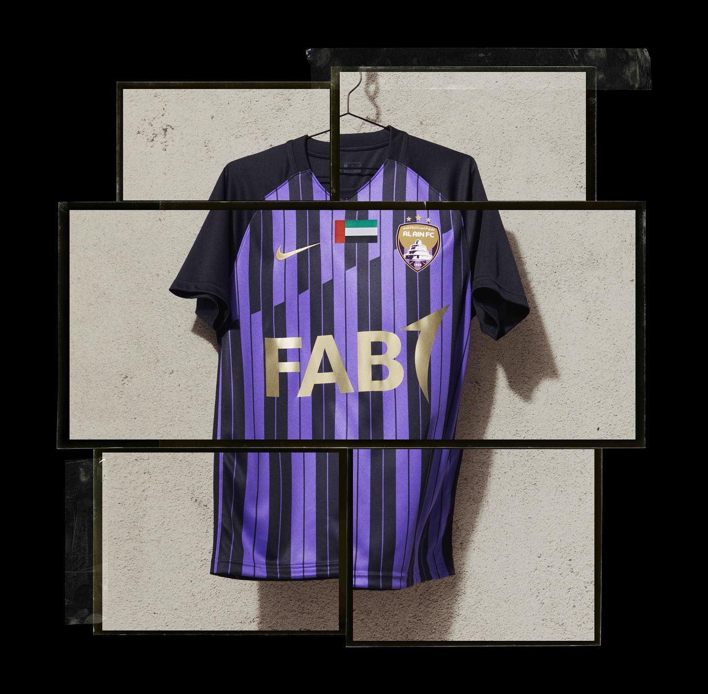 The new kit integrates innovative Aeroswift technology alongside a blend of its signature purple and gold colors. Al Ain’s white home shirt features a V-neck collar with its iconic purple stripes and signature golden swoosh. The club’s away jersey is embossed with the same design with a black base instead. The kit is complemented with purple shorts and white socks.