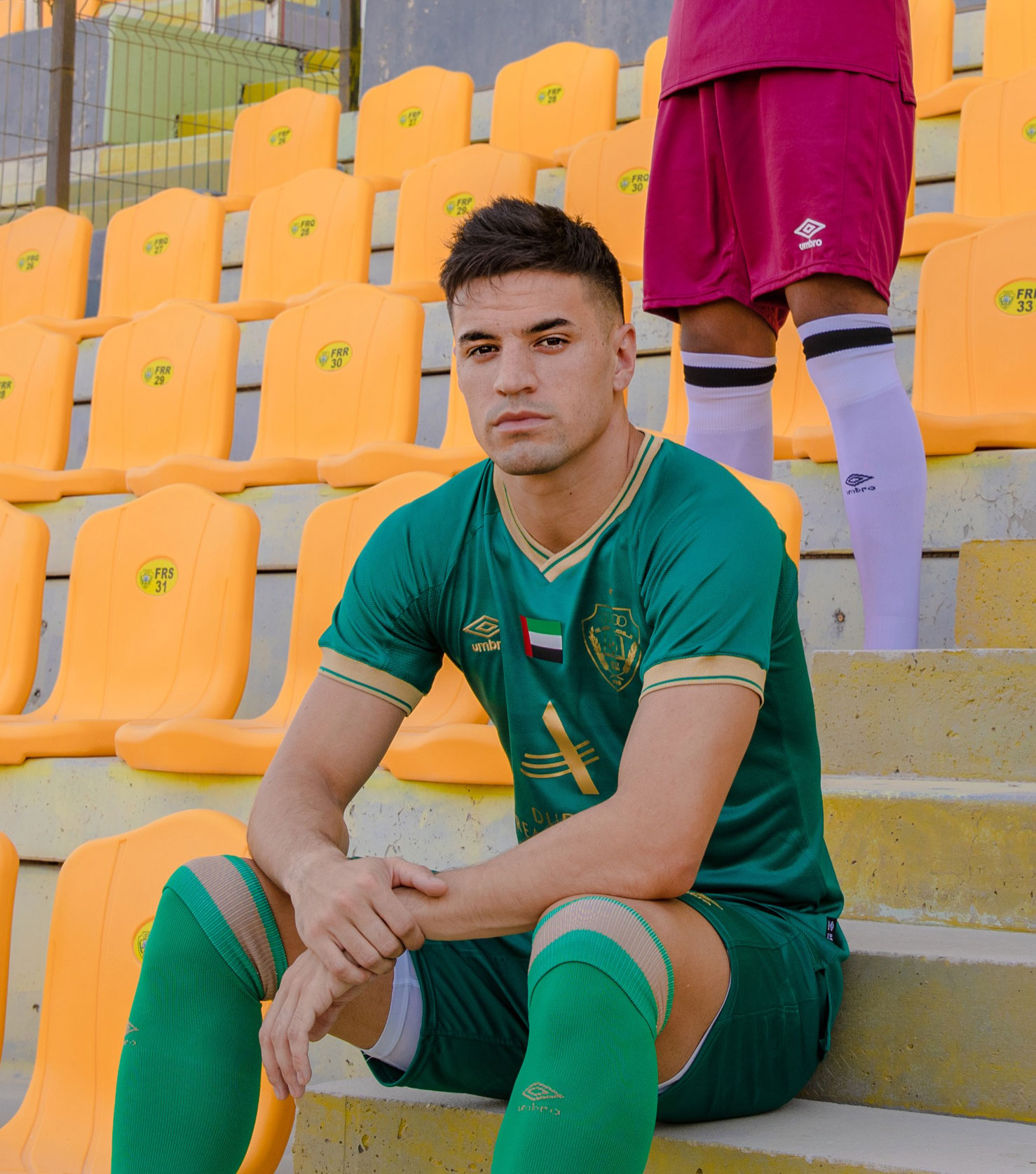 The new secondary shirt for the UAE Pro League team is in green with an animal print watermark - oddly not in the style carried by cheetahs, despite the club nickname - and gold embellishment via the neck, cuffs and further detailing.