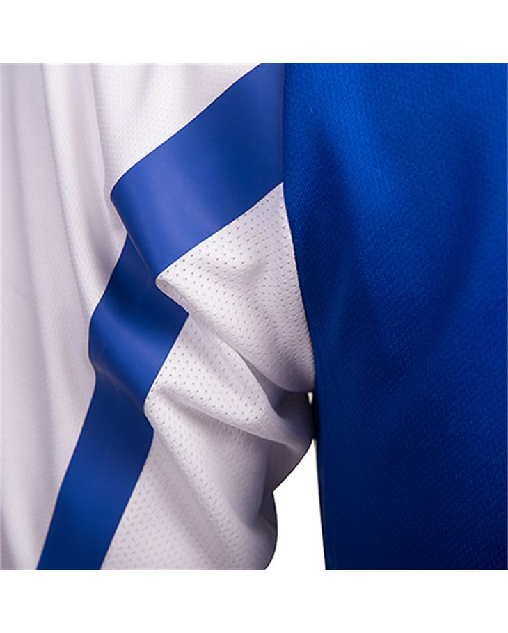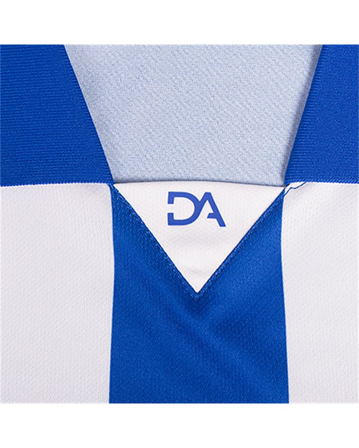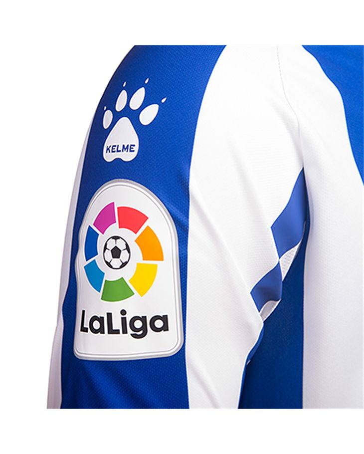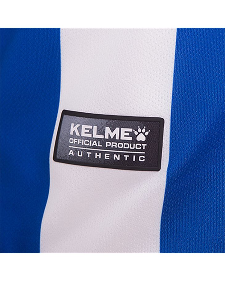 The new shirt, designed by Kelme, comprises blue and white stripes, with a “100” print lower down to signify the anniversary. The Kelme logos appear in white on blue stripes, and the Betway sponsorship logo appears in black on a white patch. There is a neat neck design and the simple blue shorts have minimal trim, while the socks carry a classical hooped design.