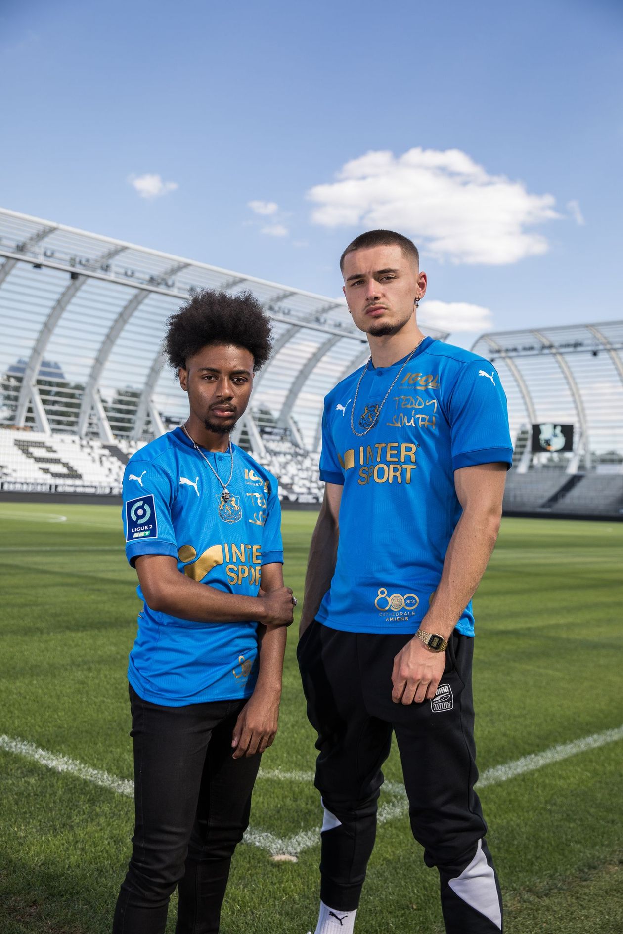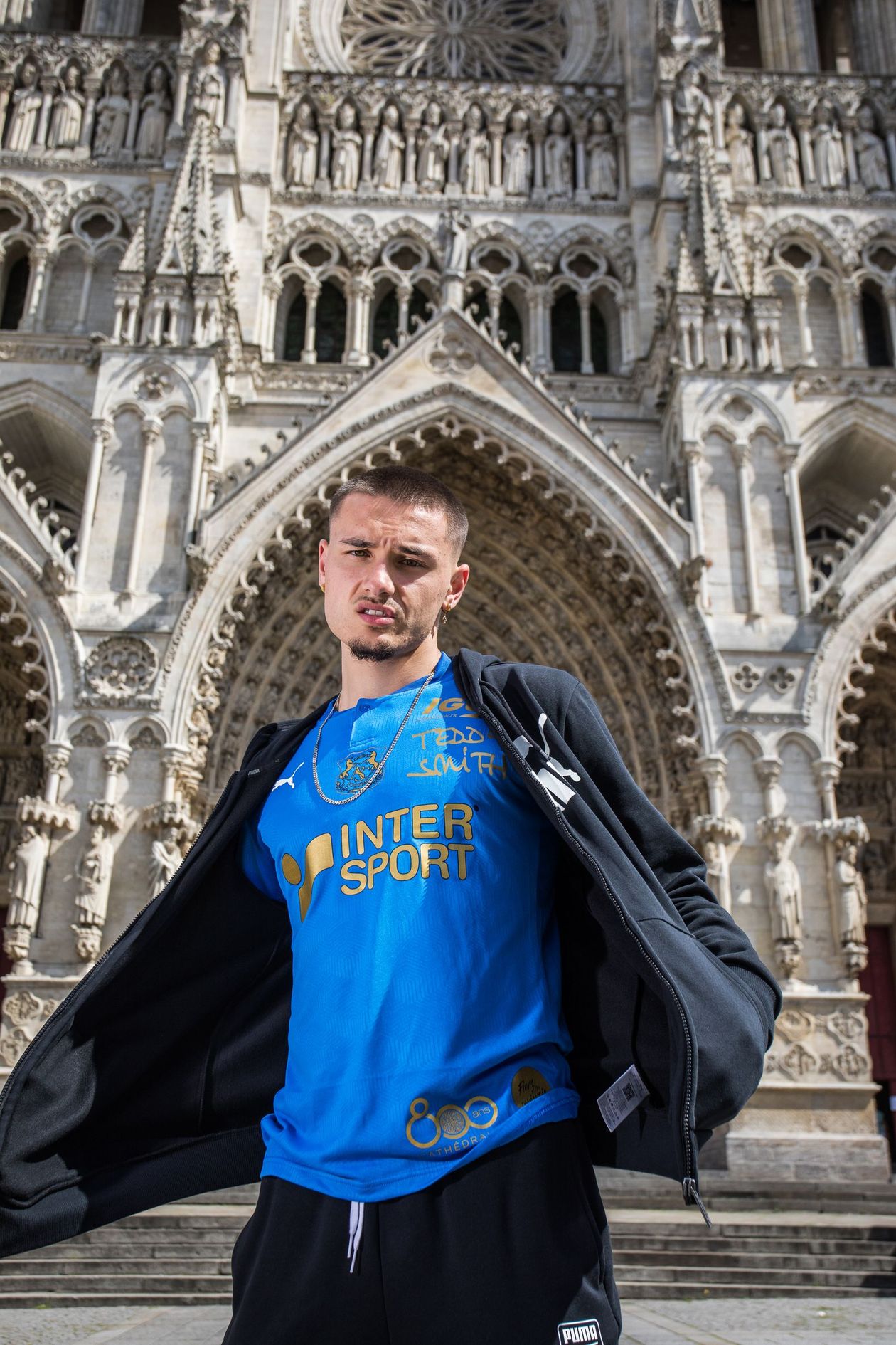 The shirt, featuring Puma’s DryCell technology, and which will most likely be combined with blue shorts and socks, also carries a golden tribute to the famous Amiens cathedral as it celebrates its 800th birthday this year.