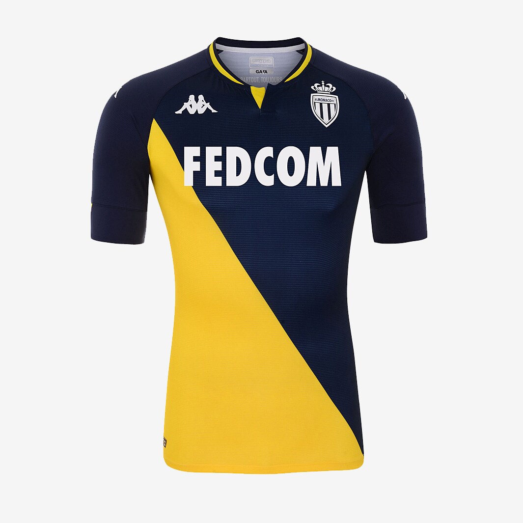 This KOMBAT™ PRO jersey, like the home kit, continues to celebrate the elegant diagonal designed by Princess Grace 60 years ago. On this occasion, the club and the Italian equipment manufacturer wanted to revisit the blue and yellow away jersey worn at the end of the 1990s and, in particular, during the 1999-2000 season, one in which the club one its 7th French league title.