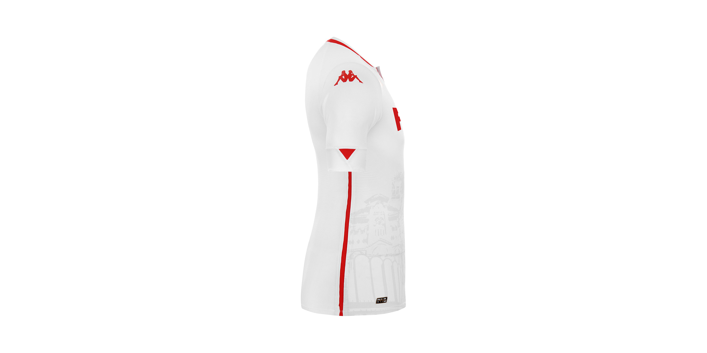 The new secondary change shirt is predominantly white but carries a sublimated representation of Monte Carlo and Monaco’s most notable landmarks, including the Malizia, the Prince’s Palace, the Sainte Dévote church as well as the Cathedral, Monaco’s Stade Louis II ground and the famous Monte Carlo Casino.