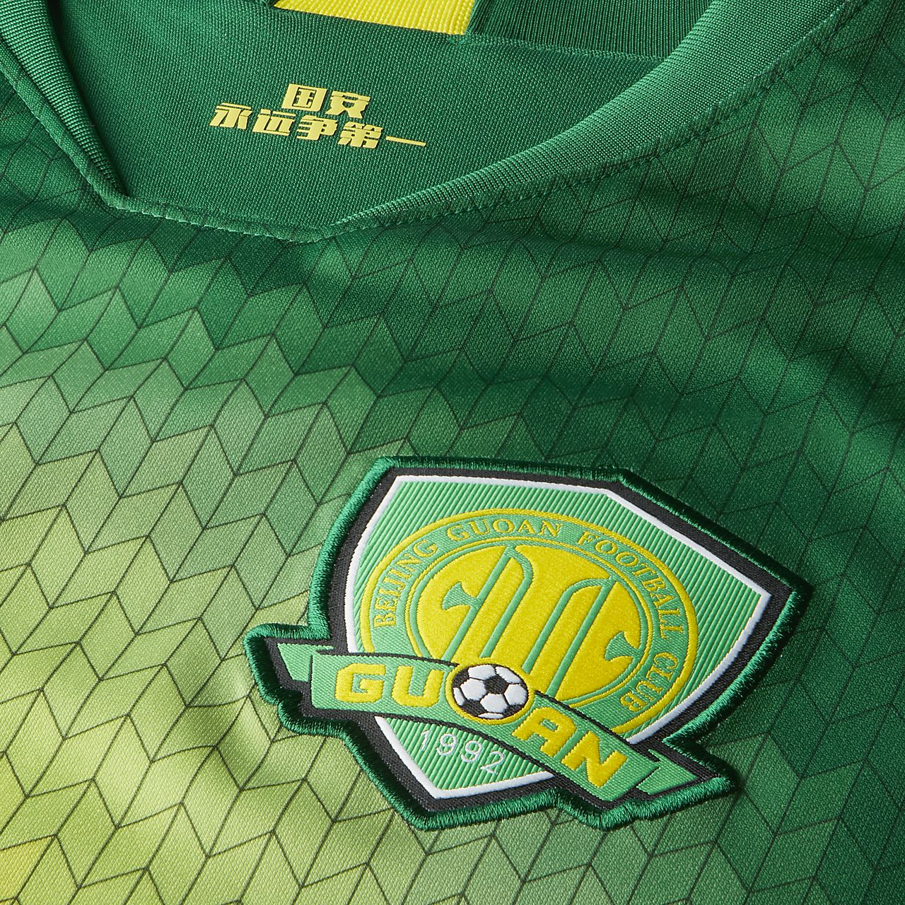 The Beijing Sinobo Guoan F.C. Home football shirt by Nike features Pine Green and Opti Yellow coloured details on highly breathable fabric to help keep you cool and dry on the pitch or in the stands.
