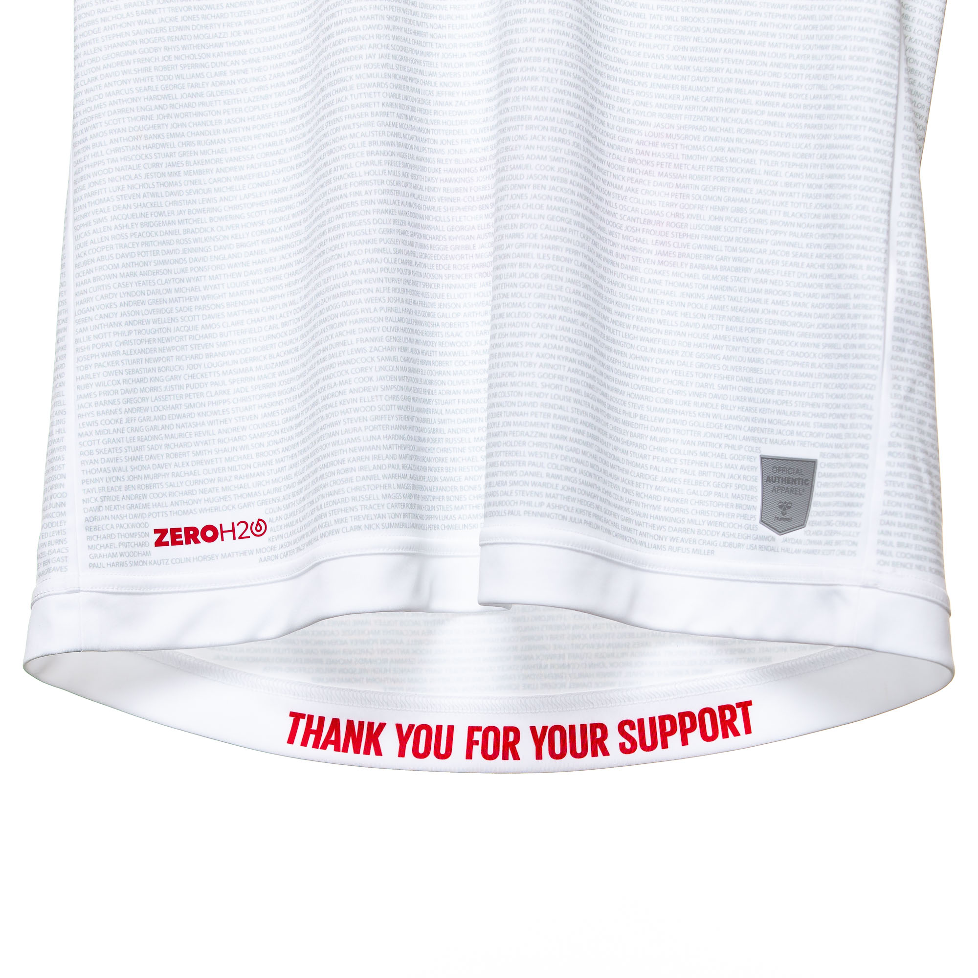 Designed in conjunction with the club’s technical partner hummel, while also displaying the club’s sponsor MansionBet, the names appear horizontally in grey text on the front and back of what is a predominantly white shirt.