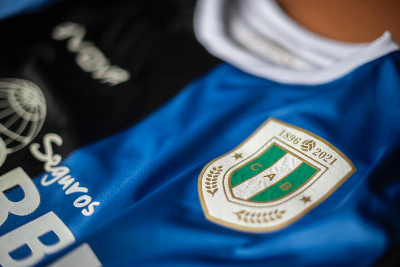 The crest has a special “1896[-]2021” detail and the sleeve also carries the Liga Profesional de Fútbol patch to mark Banfield’s participation in its Primera División.