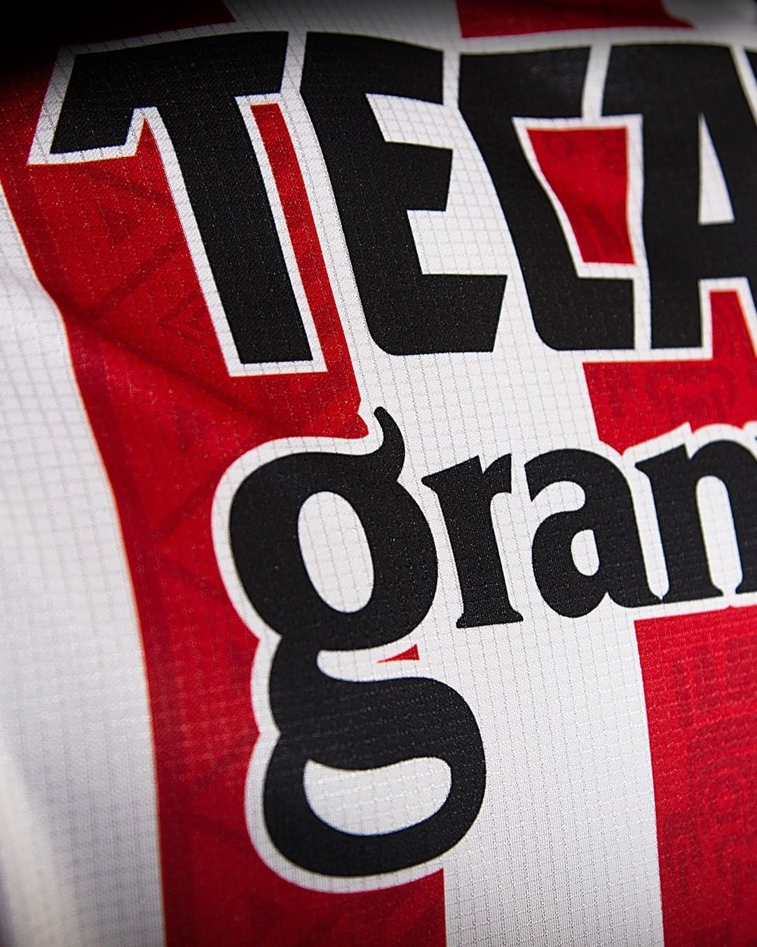 The Liga MX side’s famous red and white stripes are present and correct, this time filled with cultural decoration and extending to the sleeves, with blue and red trim appearing on the cuffs and substantial collar.