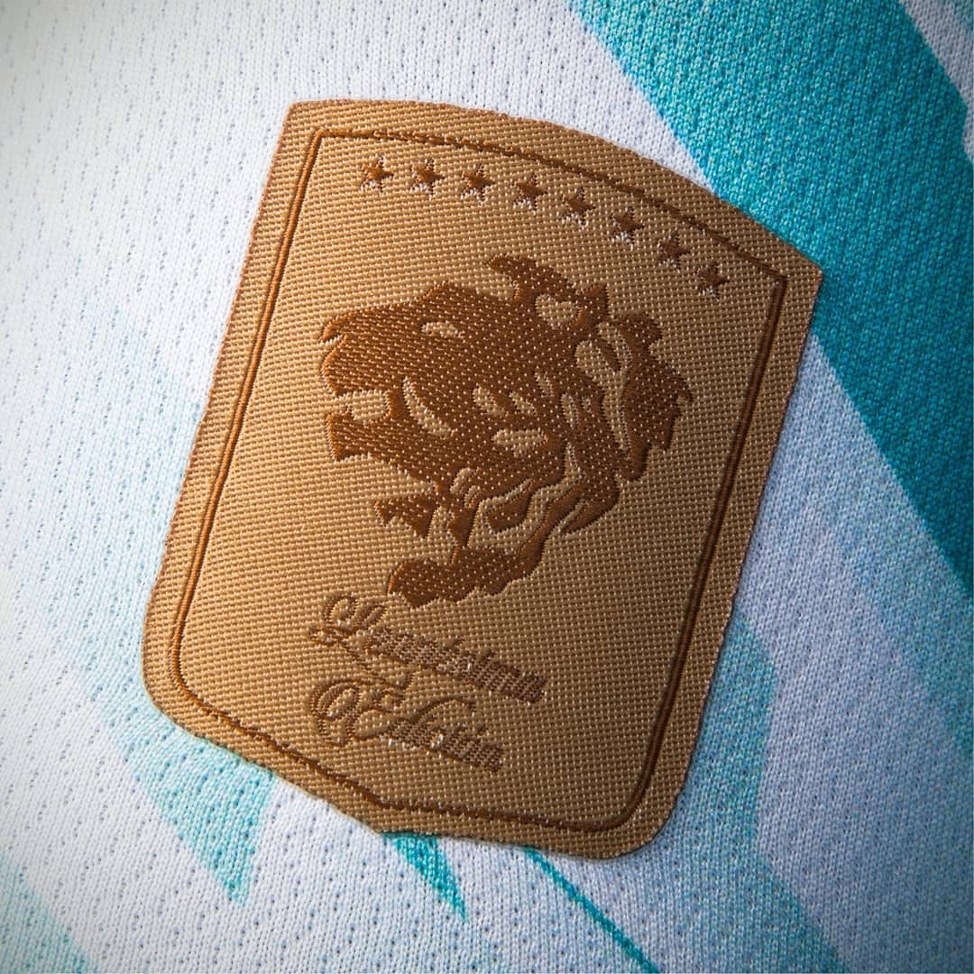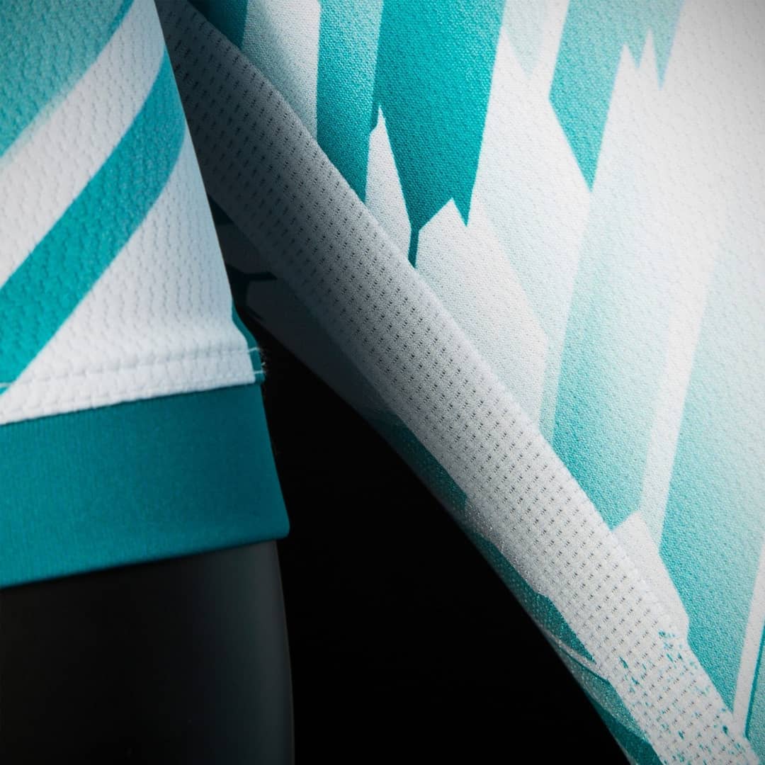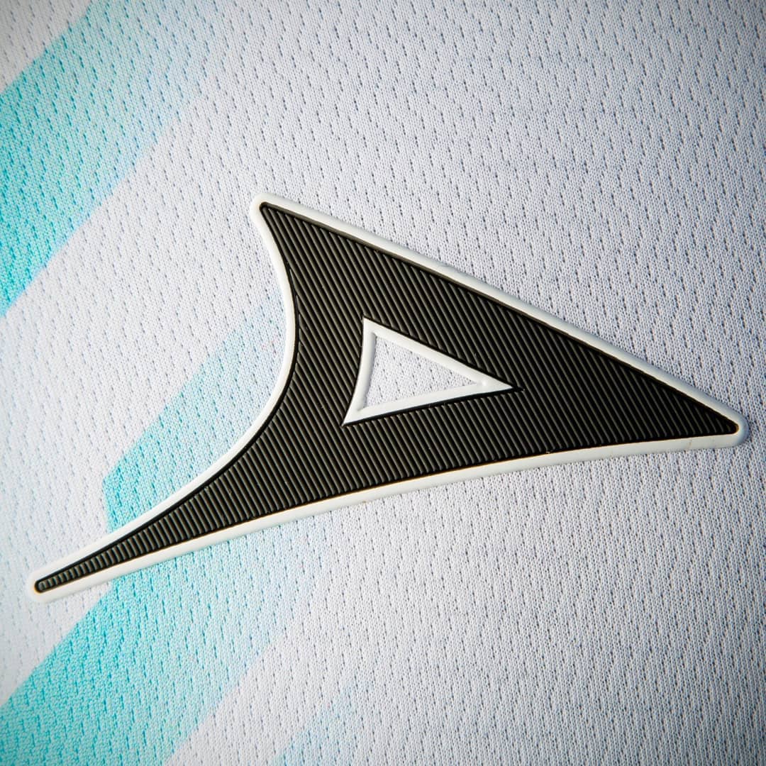 The Guanajuato-based side’s new Pirma secondary change shirt is in white with spearmint green trim, “V”-style neck, cuffs and graphical patterning on the raglan sleeves and sides of the trunk.
