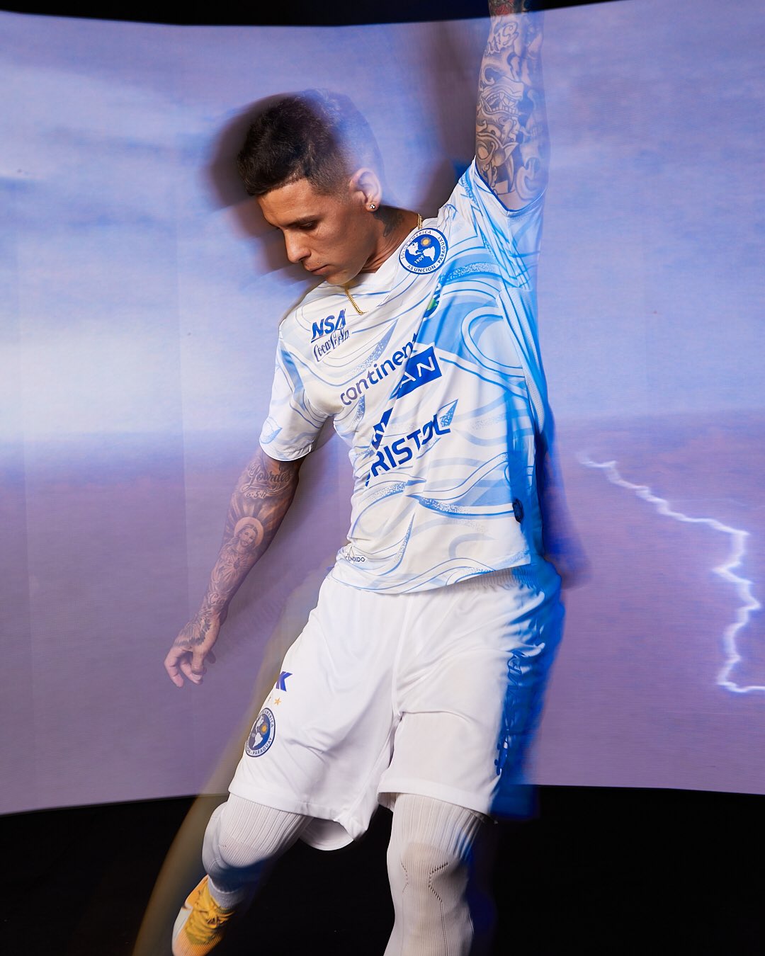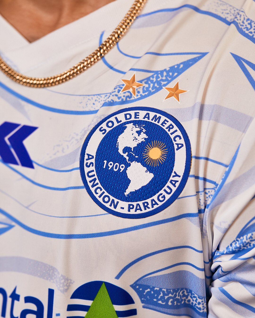 Sticking to a similar theme, the 2021 Kyrios shirts all have patterning representing an imagining of the forces emanating from the sun celebrated in the Paraguayan club’s name.
