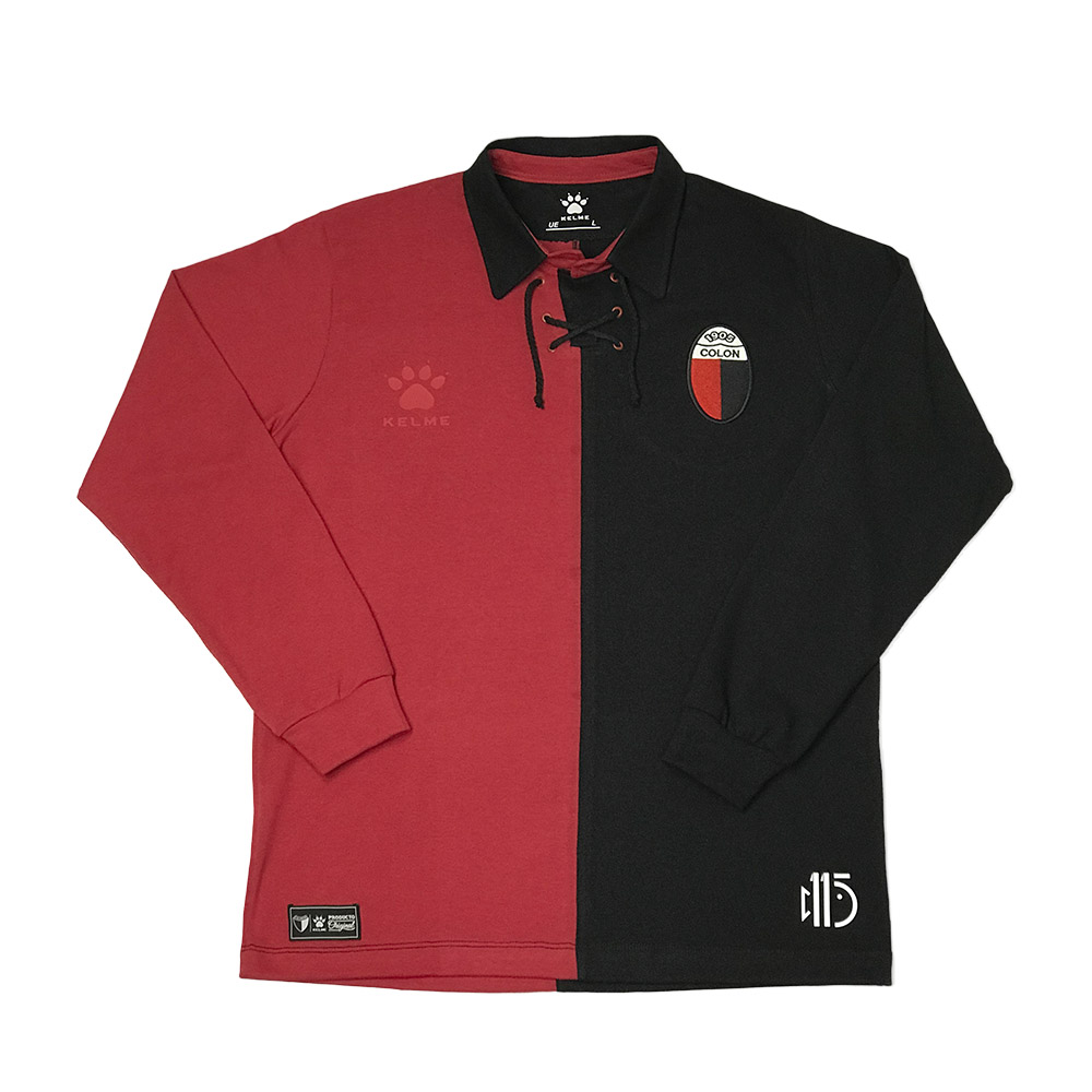 In the Argentine club’s iconic red and black halves, the long-sleeved shirt dispenses with modern stylings, including manufacturer Kelme’s logo appearing in an unobtrusive “tonal” style. Instead, there is a retro lace-up collar, nodding to the initial design worn after the formation of the club on 5th May 1905.